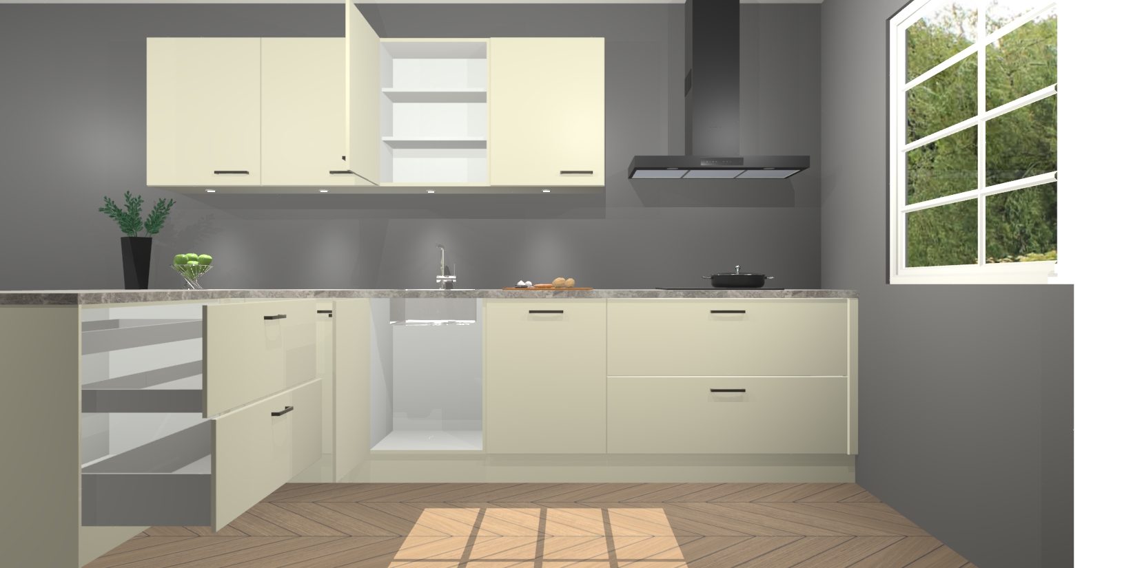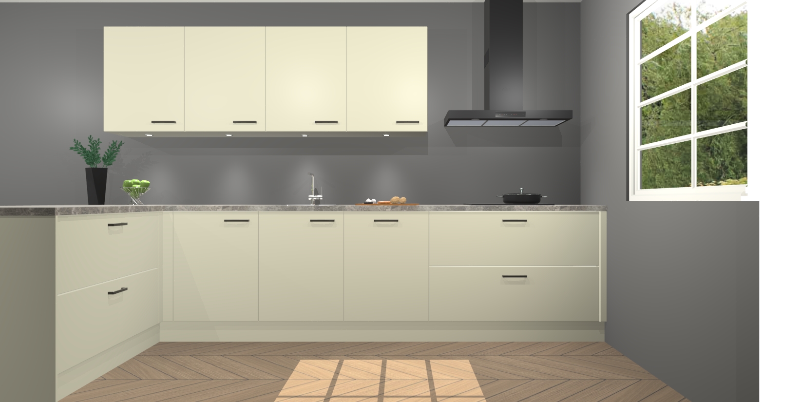Inclusief plinten, stelpoten en werkblad