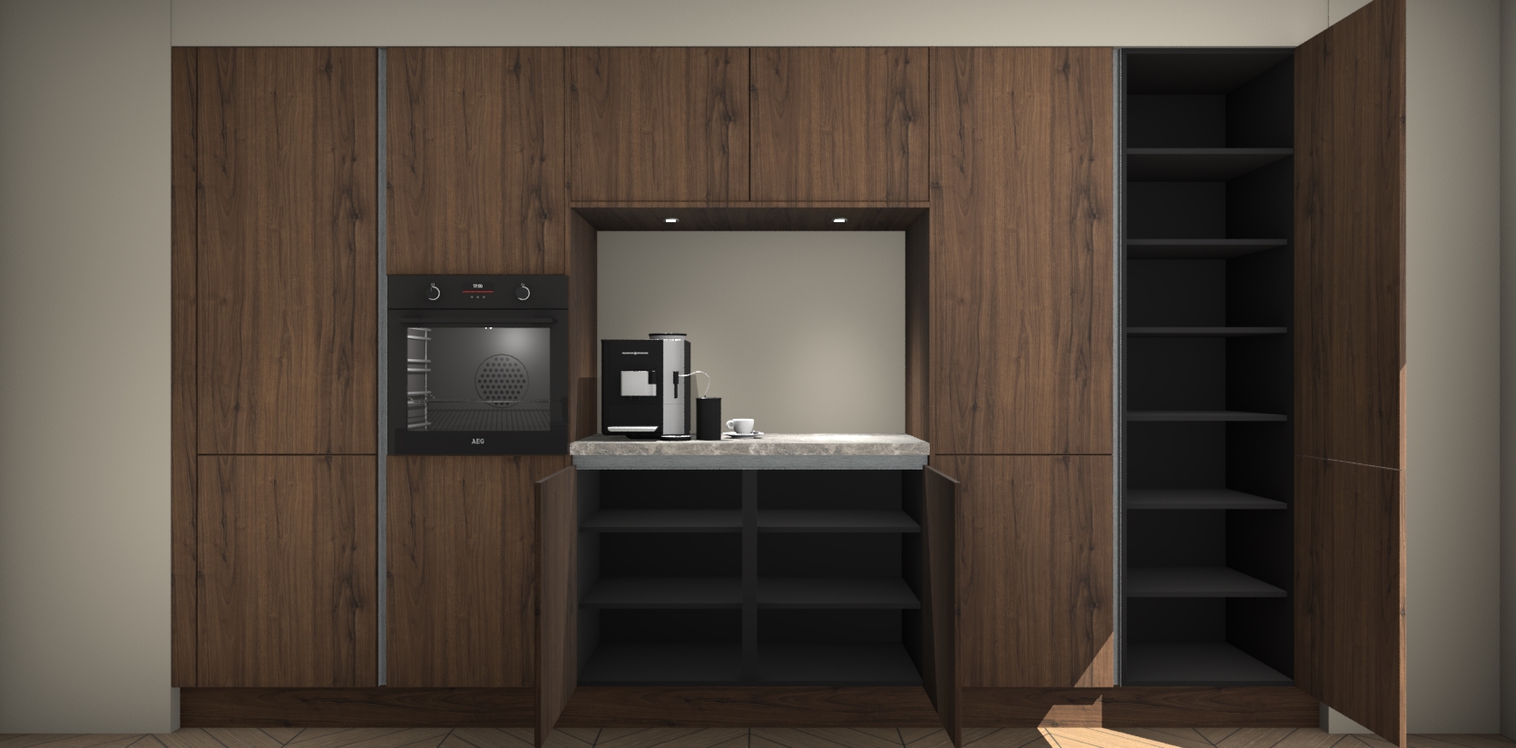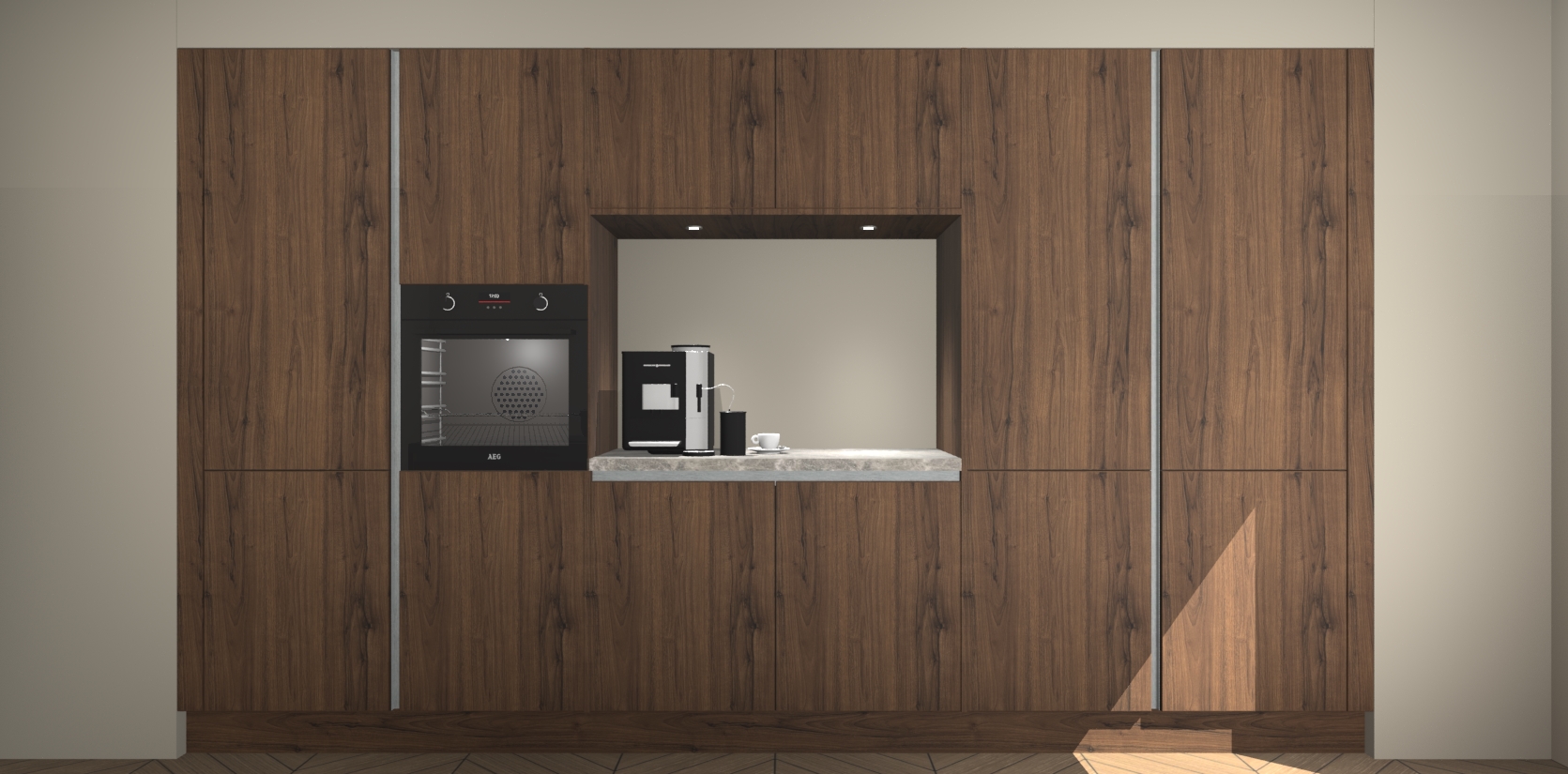 De Noten greeploze keuken Lodz wordt geleverd met een set van 5 ingebouwde apparaten: Een oven, inductiekookplaat, afzuigkap, vaatwasser en koelkast. Deze kunnen gemakkelijk worden opgewaardeerd naar AEG. Met de gegarandeerde lage prijs en de snelle levering van 7 weken kan u er op rekenen dat de Noten greeploze keuken Lodz zo snel mogelijk uw huis bereikt!