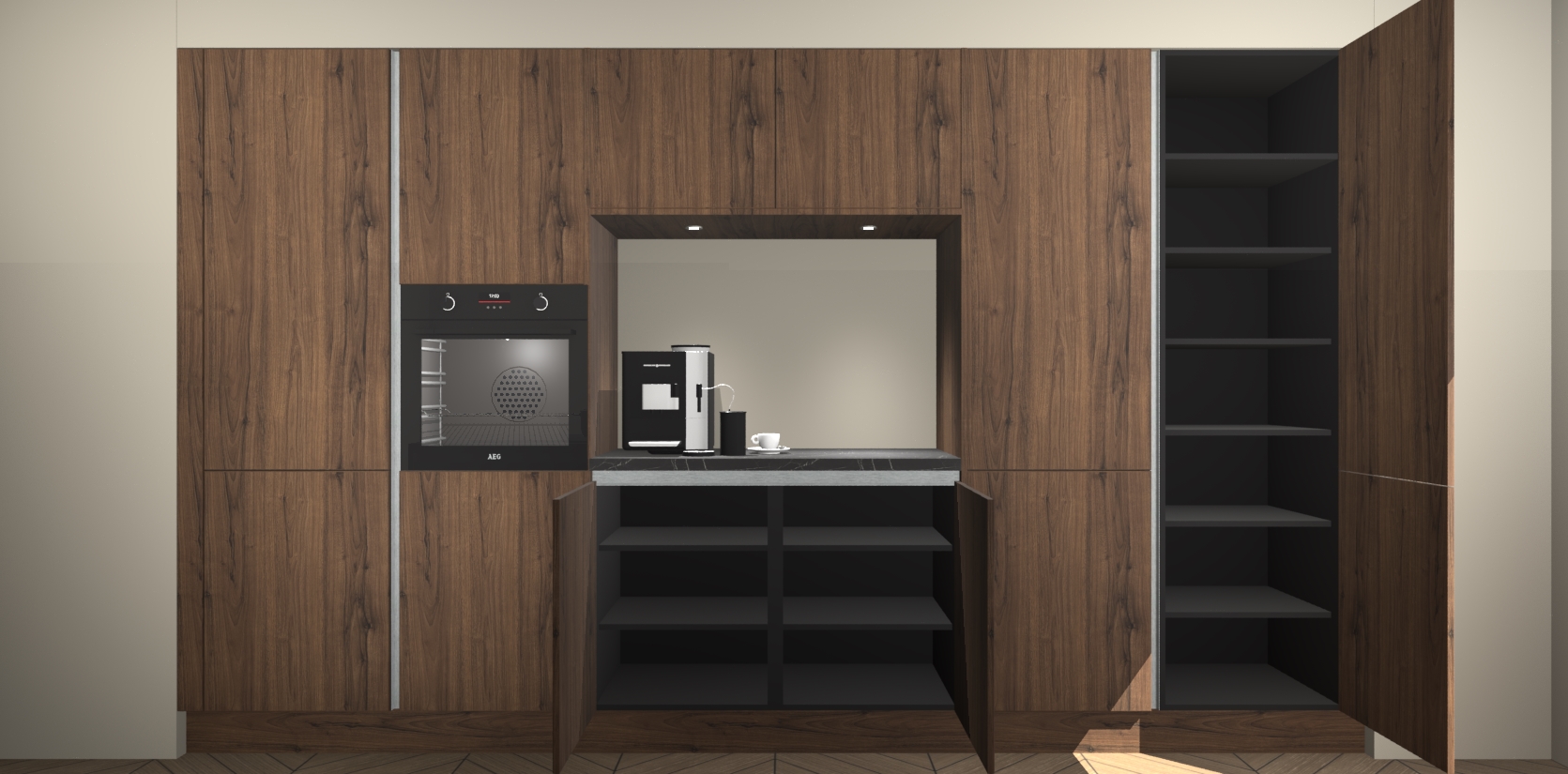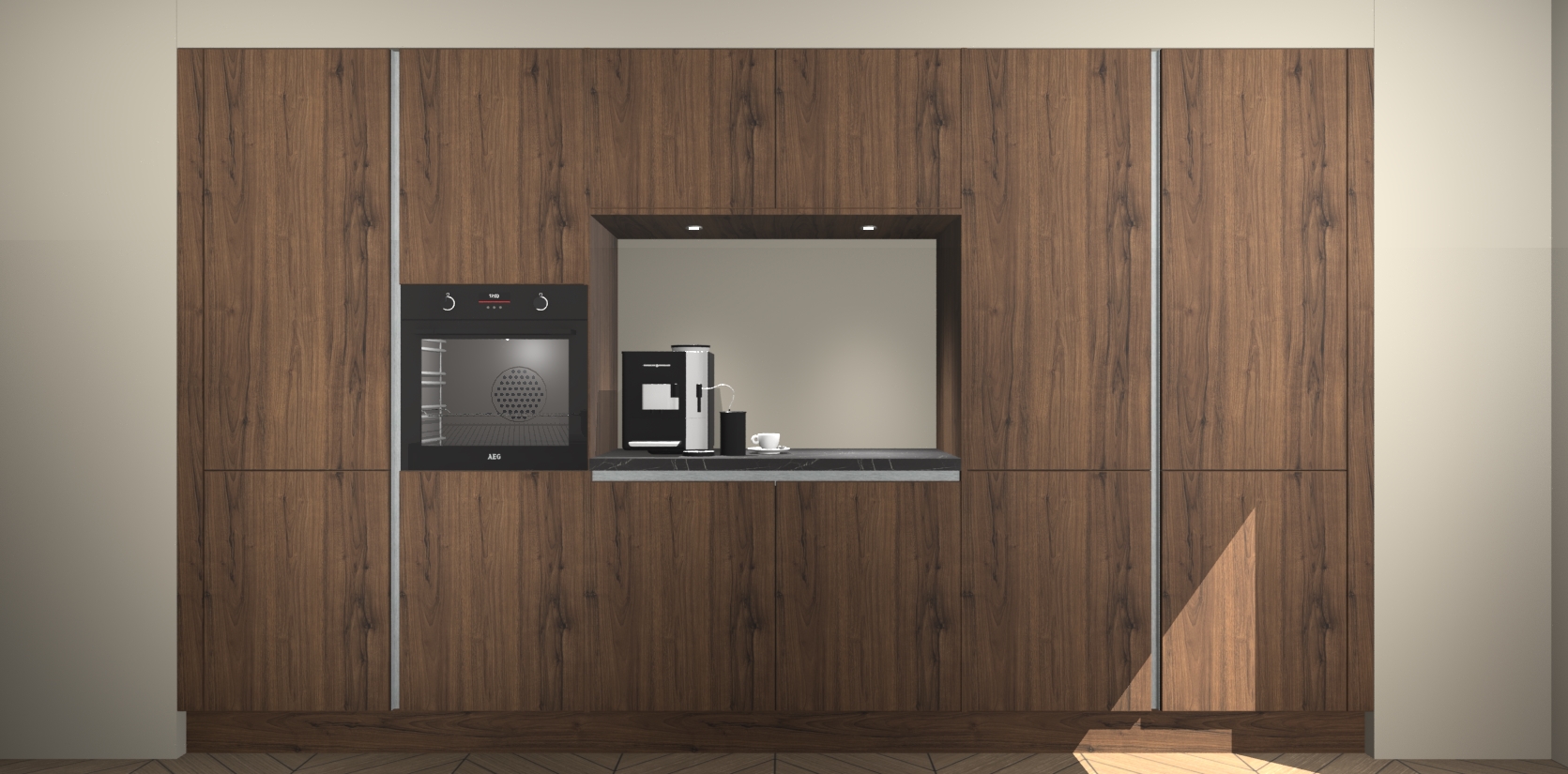 De Noten greeploze keuken Lodz wordt geleverd met een set van 5 ingebouwde apparaten: Een oven, inductiekookplaat, afzuigkap, vaatwasser en koelkast. Deze kunnen gemakkelijk worden opgewaardeerd naar AEG. Met de gegarandeerde lage prijs en de snelle levering van 7 weken kan u er op rekenen dat de Noten greeploze keuken Lodz zo snel mogelijk uw huis bereikt!