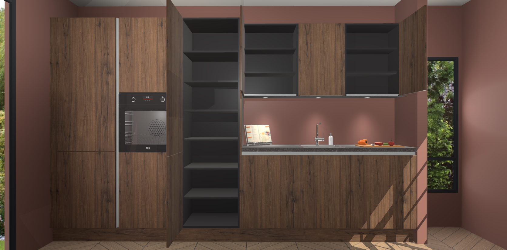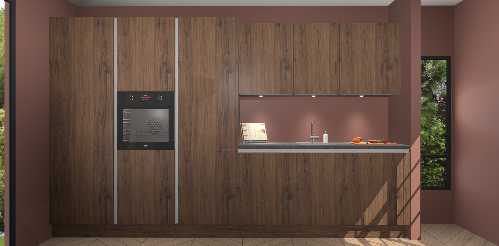 Maak kennis met de nieuwe Noten greeploze keuken Straatsburg, dat gemaakt is voor de moderne huiseigenaar. Deze chique en eigentijdse keuken geeft uw huis een instant upgrade. Het Noten greeploze ontwerp creëert de perfecte balans tussen elegantie en functionaliteit en geeft uw ruimte een strakke, uitnodigende sfeer. Het spoeleiland geeft ruime opbergruimte en met de soft-close deuren is deze keuken  perfect voor elk huis.