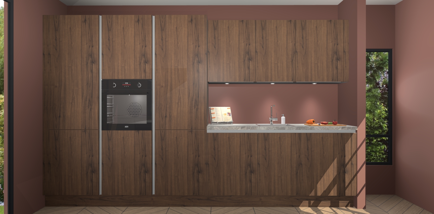 Maak kennis met de nieuwe Noten greeploze keuken Straatsburg, dat gemaakt is voor de moderne huiseigenaar. Deze chique en eigentijdse keuken geeft uw huis een instant upgrade. Het Noten greeploze ontwerp creëert de perfecte balans tussen elegantie en functionaliteit en geeft uw ruimte een strakke, uitnodigende sfeer. Het spoeleiland geeft ruime opbergruimte en met de soft-close deuren is deze keuken perfect voor elk huis.