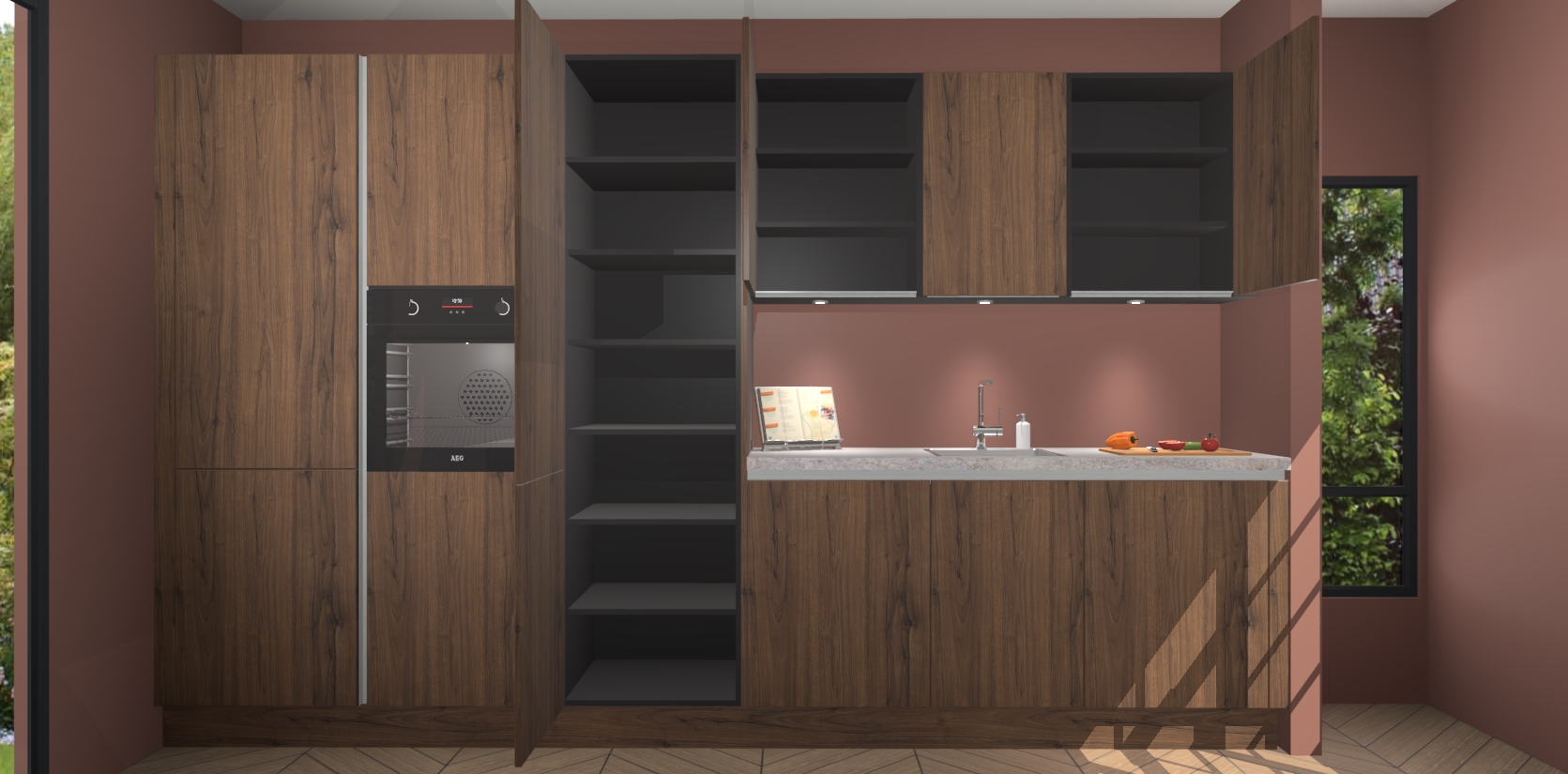 Maak kennis met de nieuwe Noten greeploze keuken Straatsburg, dat gemaakt is voor de moderne huiseigenaar. Deze chique en eigentijdse keuken geeft uw huis een instant upgrade. Het Noten greeploze ontwerp creëert de perfecte balans tussen elegantie en functionaliteit en geeft uw ruimte een strakke, uitnodigende sfeer. Het spoeleiland geeft ruime opbergruimte en met de soft-close deuren is deze keuken perfect voor elk huis.
