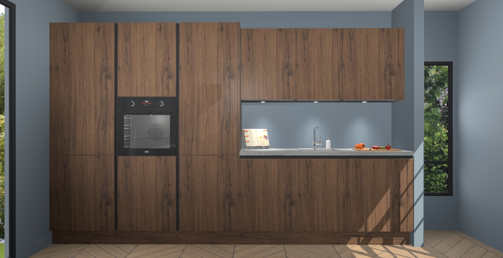 Maak kennis met de nieuwe Noten greeploze keuken Straatsburg, dat gemaakt is voor de moderne huiseigenaar. Deze chique en eigentijdse keuken geeft uw huis een instant upgrade. Het Noten greeploze ontwerp creëert de perfecte balans tussen elegantie en functionaliteit en geeft uw ruimte een strakke, uitnodigende sfeer. Het spoeleiland geeft ruime opbergruimte en met de soft-close deuren is deze keuken perfect voor elk huis.