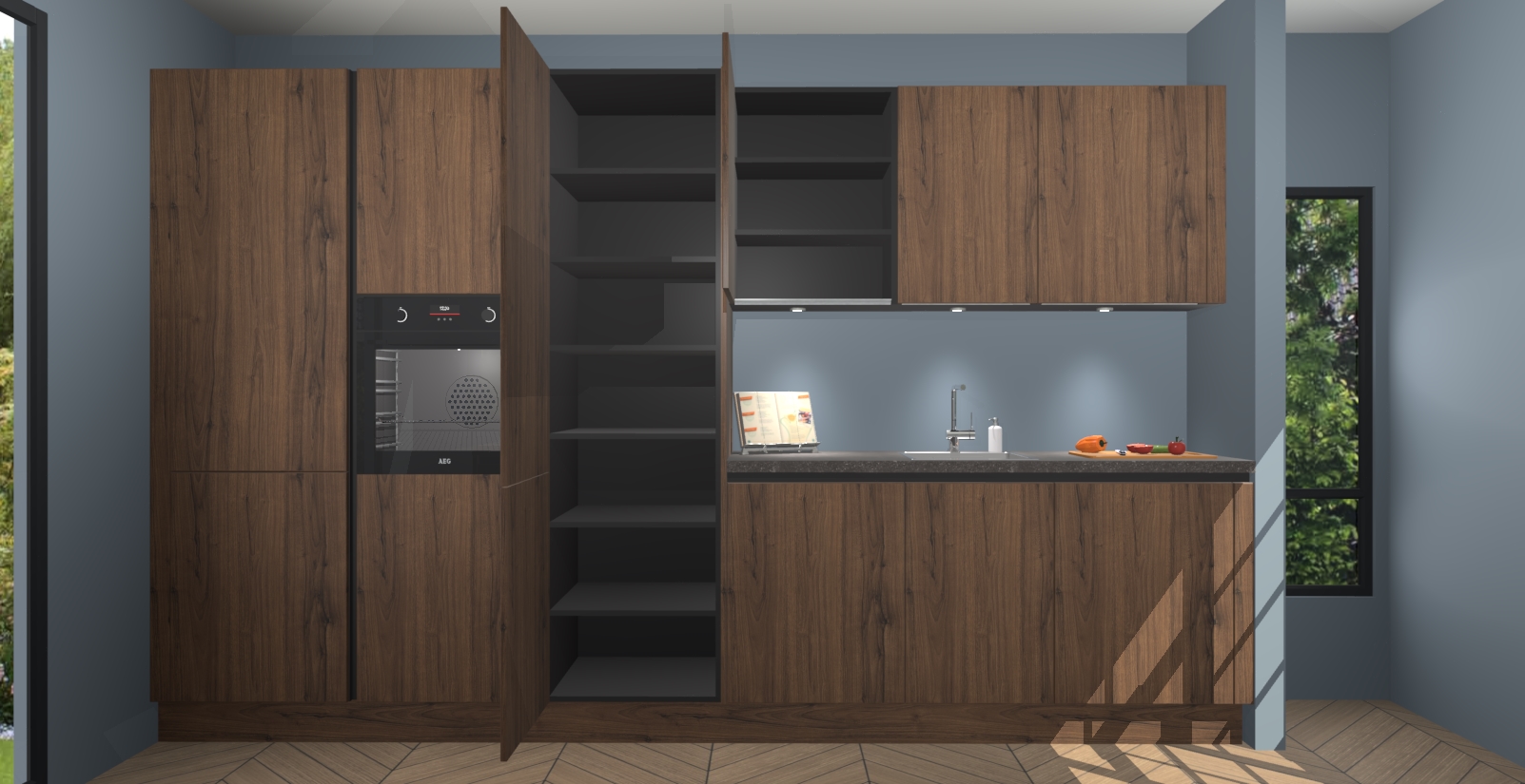 Maak kennis met de nieuwe Noten greeploze keuken Straatsburg, dat gemaakt is voor de moderne huiseigenaar. Deze chique en eigentijdse keuken geeft uw huis een instant upgrade. Het Noten greeploze ontwerp creëert de perfecte balans tussen elegantie en functionaliteit en geeft uw ruimte een strakke, uitnodigende sfeer. Het spoeleiland geeft ruime opbergruimte en met de soft-close deuren is deze keuken perfect voor elk huis.