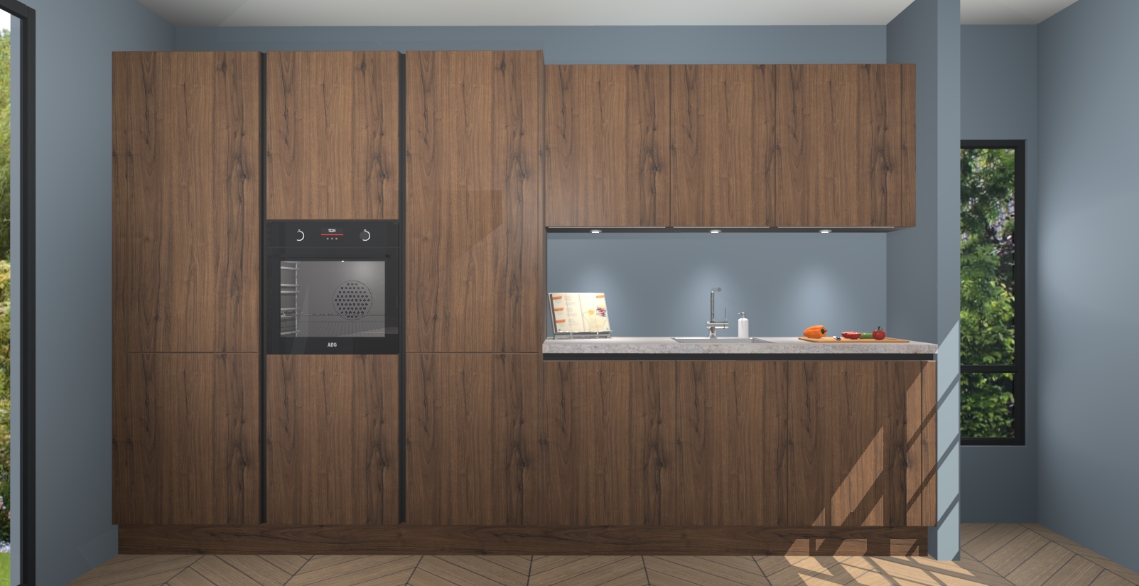 Maak kennis met de nieuwe Noten greeploze keuken Straatsburg, dat gemaakt is voor de moderne huiseigenaar. Deze chique en eigentijdse keuken geeft uw huis een instant upgrade. Het Noten greeploze ontwerp creëert de perfecte balans tussen elegantie en functionaliteit en geeft uw ruimte een strakke, uitnodigende sfeer. Het spoeleiland geeft ruime opbergruimte en met de soft-close deuren is deze keuken  perfect voor elk huis.