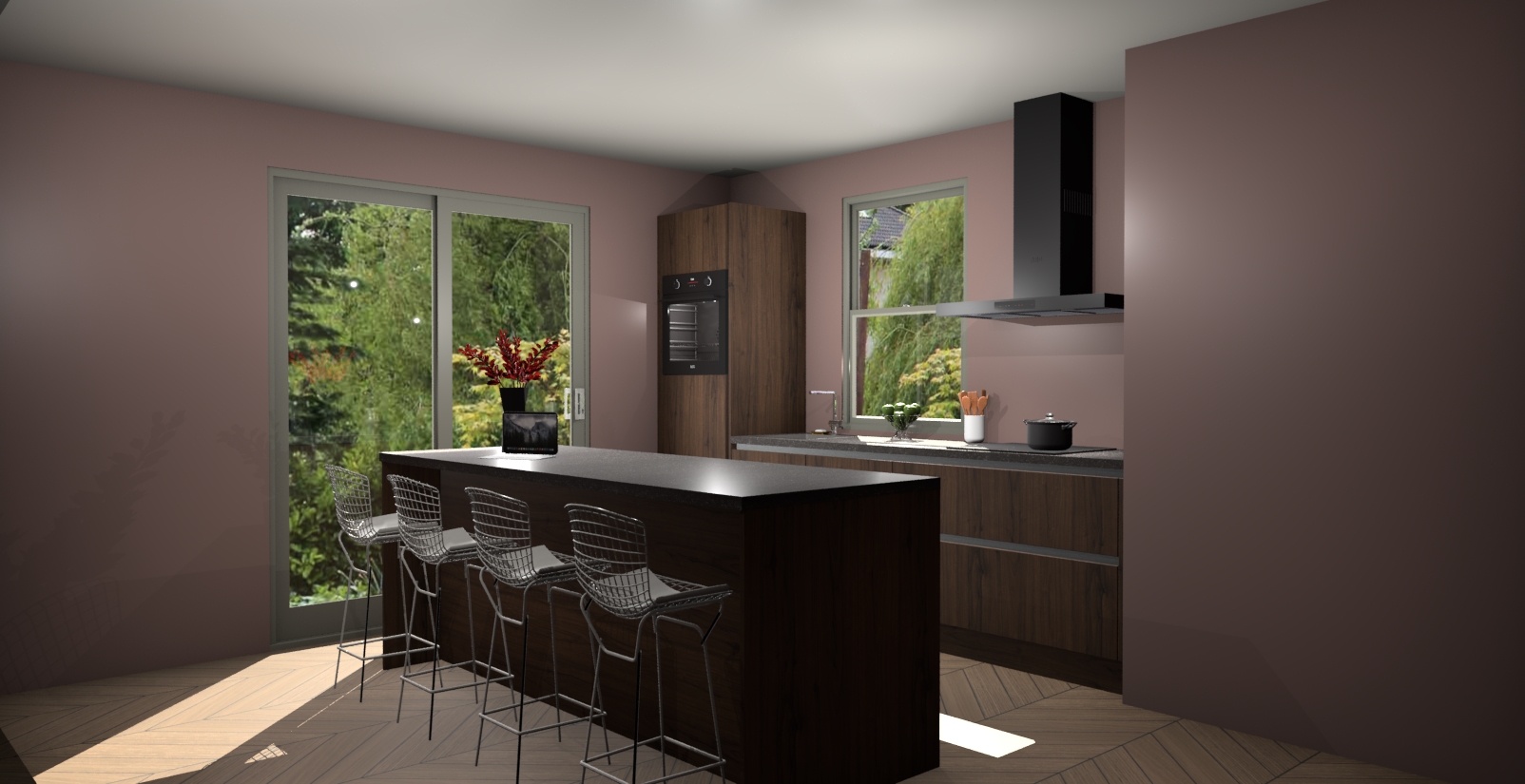 Een stijlvolle en praktische keuken als deze mag gezien worden. Dankzij de prachtige Noten afwerking wordt de keuken gemakkelijk het middelpunt van uw huis - hij ziet er geweldig uit onder allerlei lichtomstandigheden, van dag tot nacht!