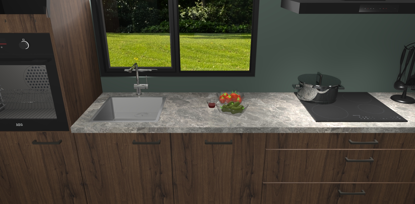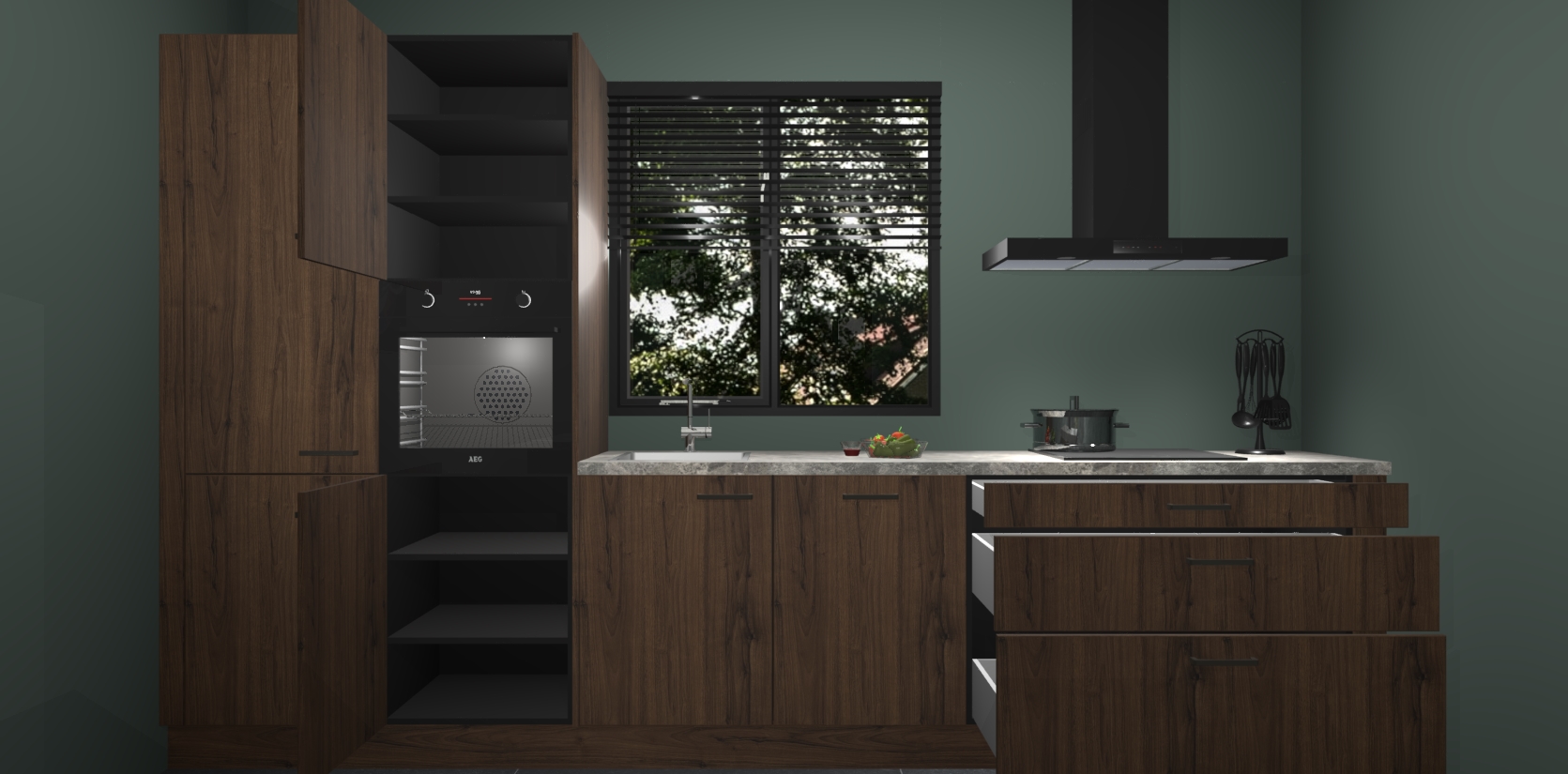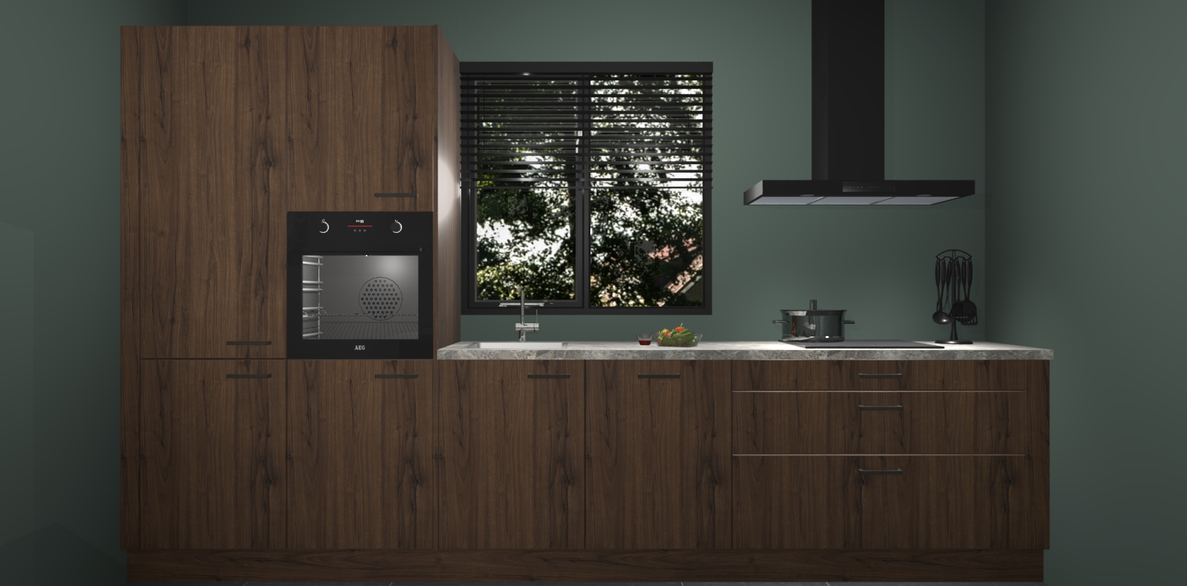 Maak kennis met de noten keuken Bonaire: de perfecte balans tussen tijdloos en modern. Met voldoende opbergruimte zal deze keuken de afgunst van uw vrienden en familie zijn, terwijl uw leven moeiteloos georganiseerd en rommelvrij blijft.