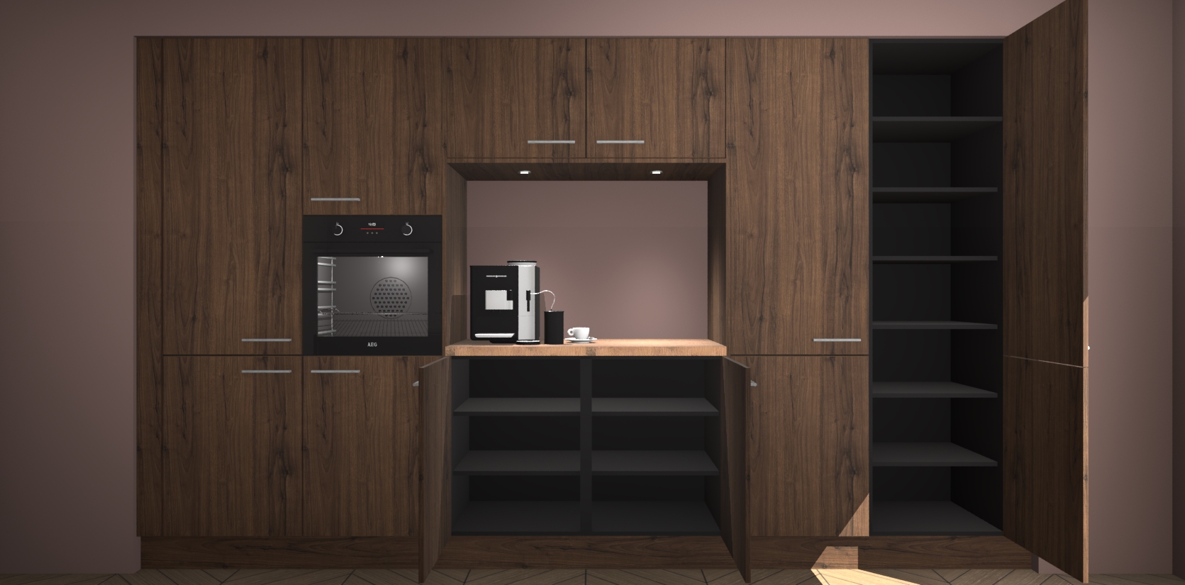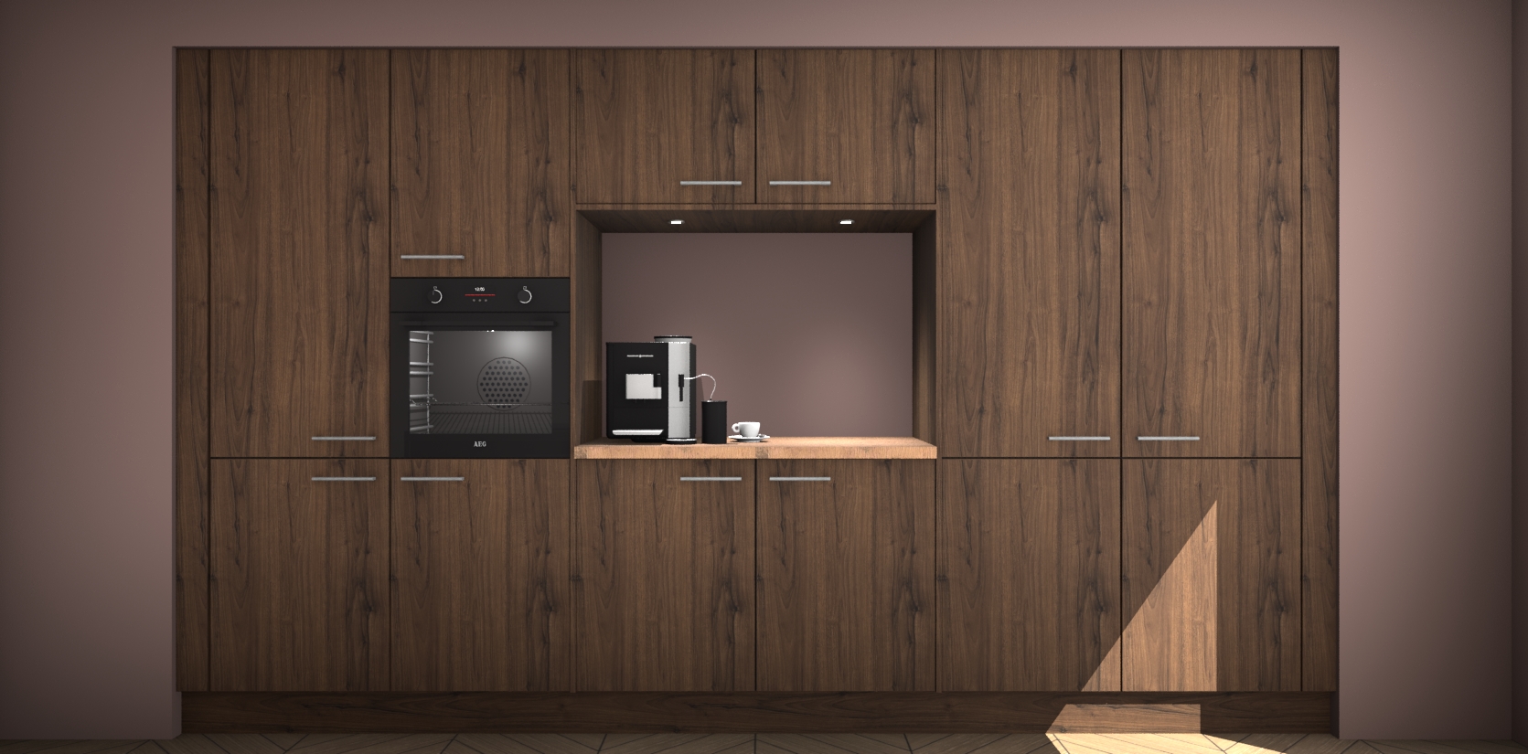 De Noten keuken Lodz wordt geleverd met een set van 5 ingebouwde apparaten: Een oven, inductiekookplaat, afzuigkap, vaatwasser en koelkast. Deze kunnen gemakkelijk worden opgewaardeerd naar AEG. Met de gegarandeerde lage prijs en de snelle levering van 7 weken kan u er op rekenen dat de Noten keuken Lodz zo snel mogelijk uw huis bereikt!