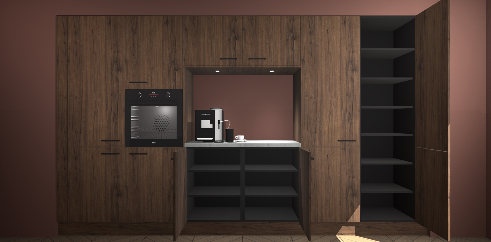 De Noten keuken Lodz wordt geleverd met een set van 5 ingebouwde apparaten: Een oven, inductiekookplaat, afzuigkap, vaatwasser en koelkast. Deze kunnen gemakkelijk worden opgewaardeerd naar AEG. Met de gegarandeerde lage prijs en de snelle levering van 7 weken kan u er op rekenen dat de Noten keuken Lodz zo snel mogelijk uw huis bereikt!