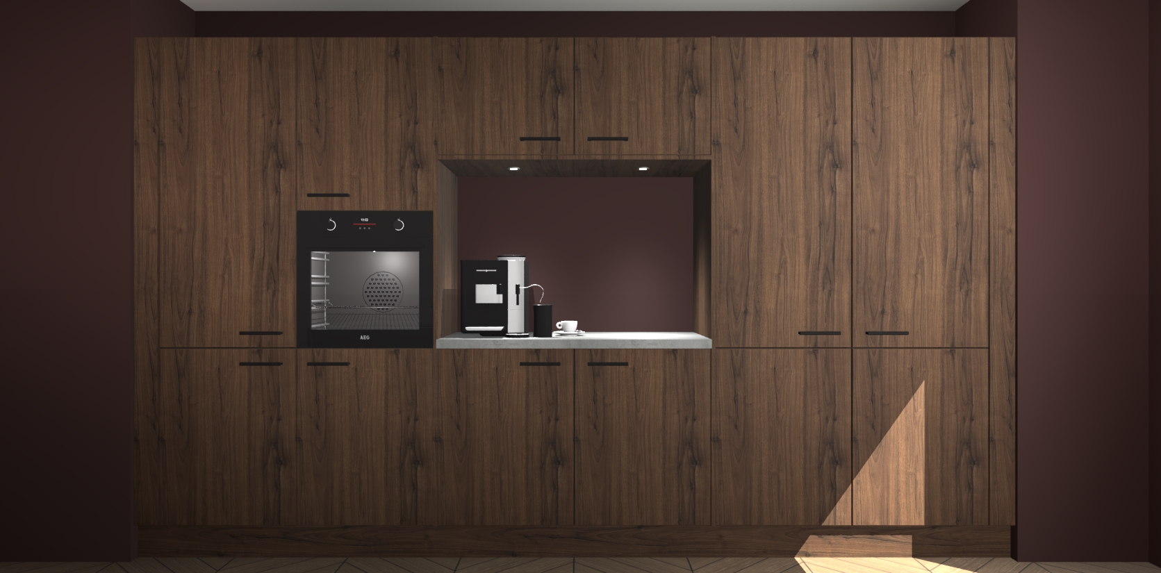 De Noten keuken Lodz wordt geleverd met een set van 5 ingebouwde apparaten: Een oven, inductiekookplaat, afzuigkap, vaatwasser en koelkast. Deze kunnen gemakkelijk worden opgewaardeerd naar AEG. Met de gegarandeerde lage prijs en de snelle levering van 7 weken kan u er op rekenen dat de Noten keuken Lodz zo snel mogelijk uw huis bereikt!