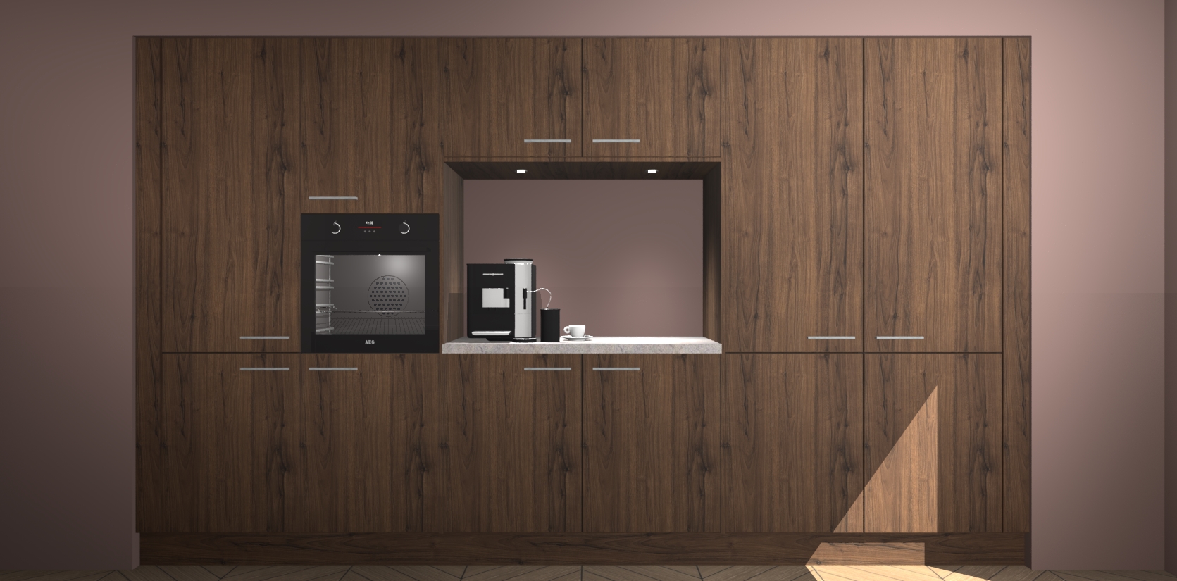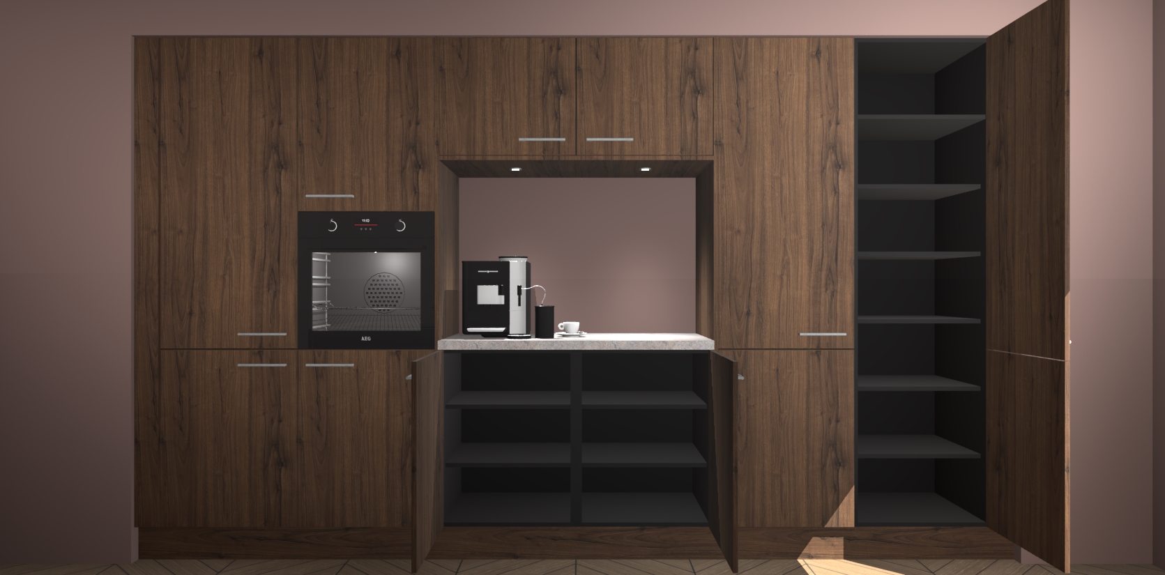 De Noten keuken Lodz wordt geleverd met een set van 5 ingebouwde apparaten: Een oven, inductiekookplaat, afzuigkap, vaatwasser en koelkast. Deze kunnen gemakkelijk worden opgewaardeerd naar AEG. Met de gegarandeerde lage prijs en de snelle levering van 7 weken kan u er op rekenen dat de Noten keuken Lodz zo snel mogelijk uw huis bereikt!
