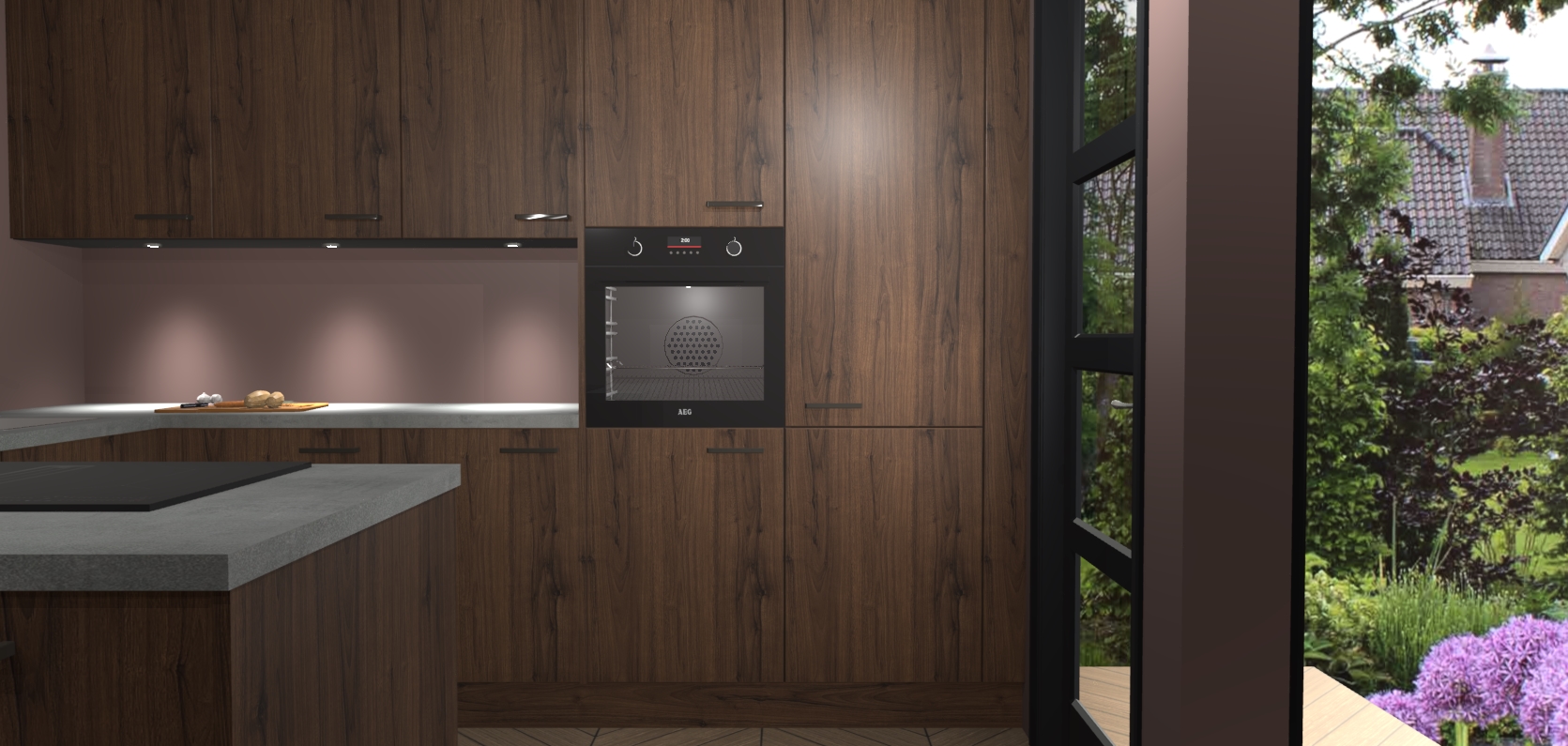 De perfecte toevoeging aan uw droomkeuken! De noten keuken Rosario is een opmerkelijke en verfijnde keuken. Hij is ontworpen met moderne lijnen en tijdloze schoonheid die garant staan voor een luxe uitstraling. Deze uiterst functionele en mooie keuken heeft een reeks verbazingwekkende functies: de overvloedige opbergruimte bevat soft close deuren, terwijl vijf inbouwapparaten zijn inbegrepen in de vaste lage prijs. Beter nog, uw noten keuken Rosario bestellen duurt slechts 7 weken met levering van voorgemonteerde kasten.