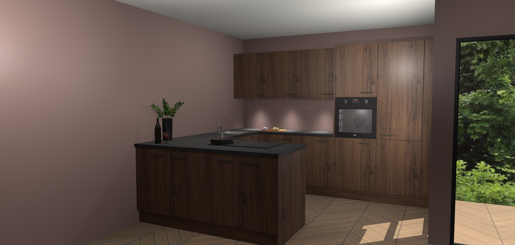 De perfecte toevoeging aan uw droomkeuken! De noten keuken Rosario is een opmerkelijke en verfijnde keuken. Hij is ontworpen met moderne lijnen en tijdloze schoonheid die garant staan voor een luxe uitstraling. Deze uiterst functionele en mooie keuken heeft een reeks verbazingwekkende functies: de overvloedige opbergruimte bevat soft close deuren, terwijl vijf inbouwapparaten zijn inbegrepen in de vaste lage prijs. Beter nog, uw noten keuken Rosario bestellen duurt slechts 7 weken met levering van voorgemonteerde kasten.
