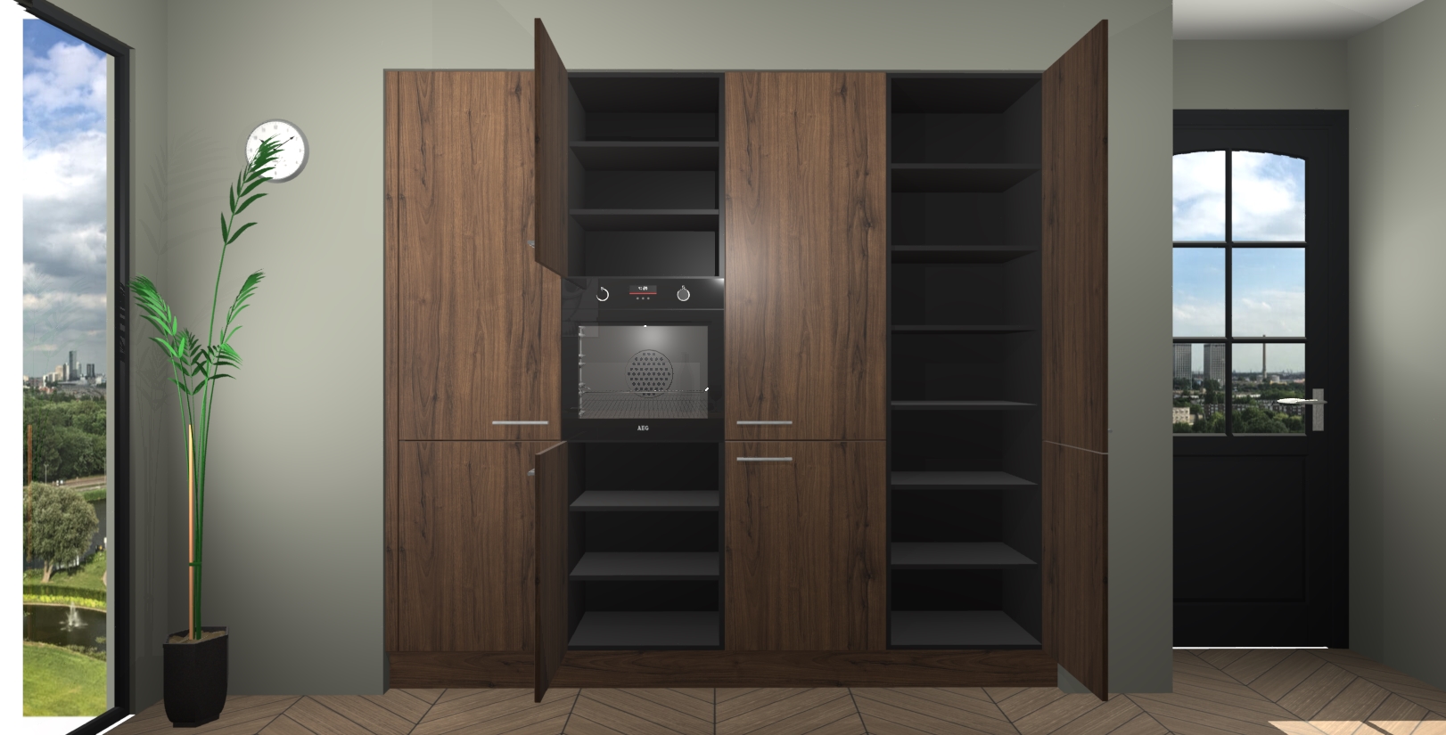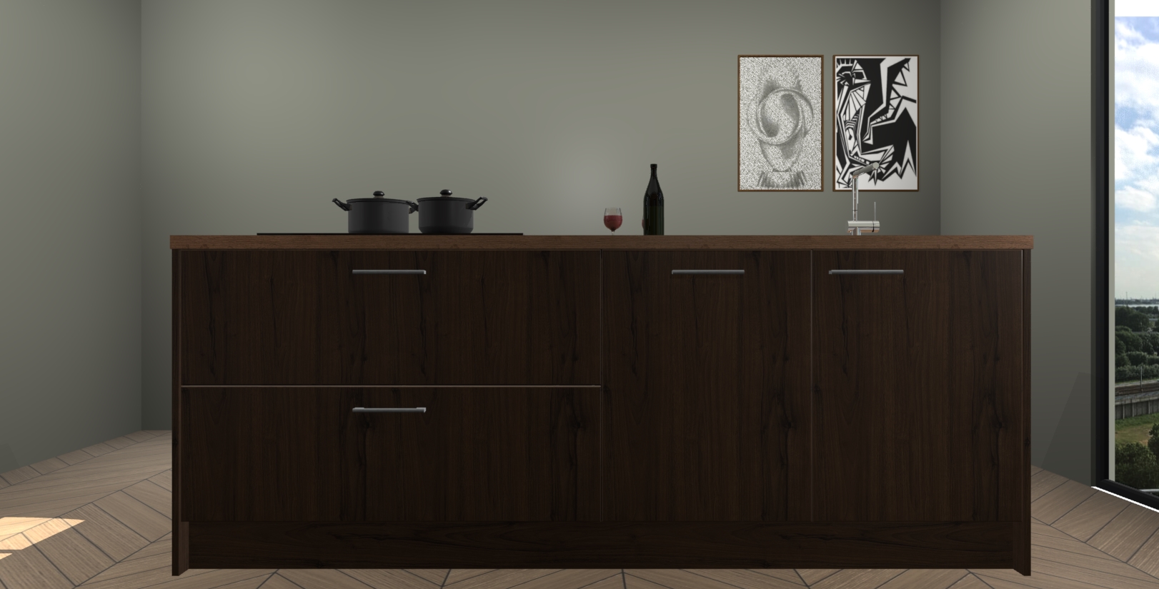Breng luxe in uw keuken met de Noten Rusiec Keuken! Dit prachtige kookeiland straalt elegantie uit en laat elke ruimte er modern en verfijnd uitzien. De strakke Noten kleur geeft uw keuken een gevoel van sfeer en verfijning dat u bij andere stijlen niet krijgt.