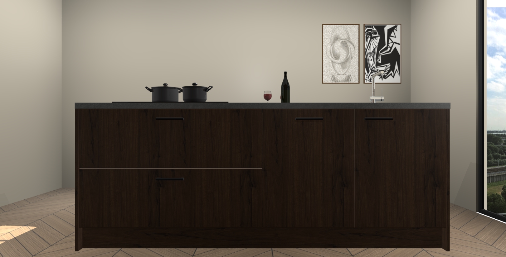 Breng luxe in uw keuken met de Noten Rusiec Keuken! Dit prachtige kookeiland straalt elegantie uit en laat elke ruimte er modern en verfijnd uitzien. De strakke Noten kleur geeft uw keuken een gevoel van sfeer en verfijning dat u bij andere stijlen niet krijgt.