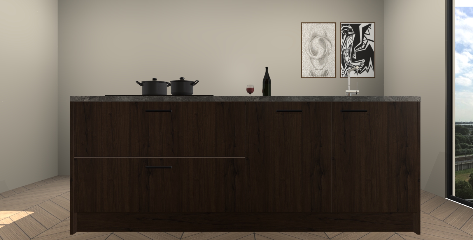 Breng luxe in uw keuken met de Noten Rusiec Keuken! Dit prachtige kookeiland straalt elegantie uit en laat elke ruimte er modern en verfijnd uitzien. De strakke Noten kleur geeft uw keuken een gevoel van sfeer en verfijning dat u bij andere stijlen niet krijgt.