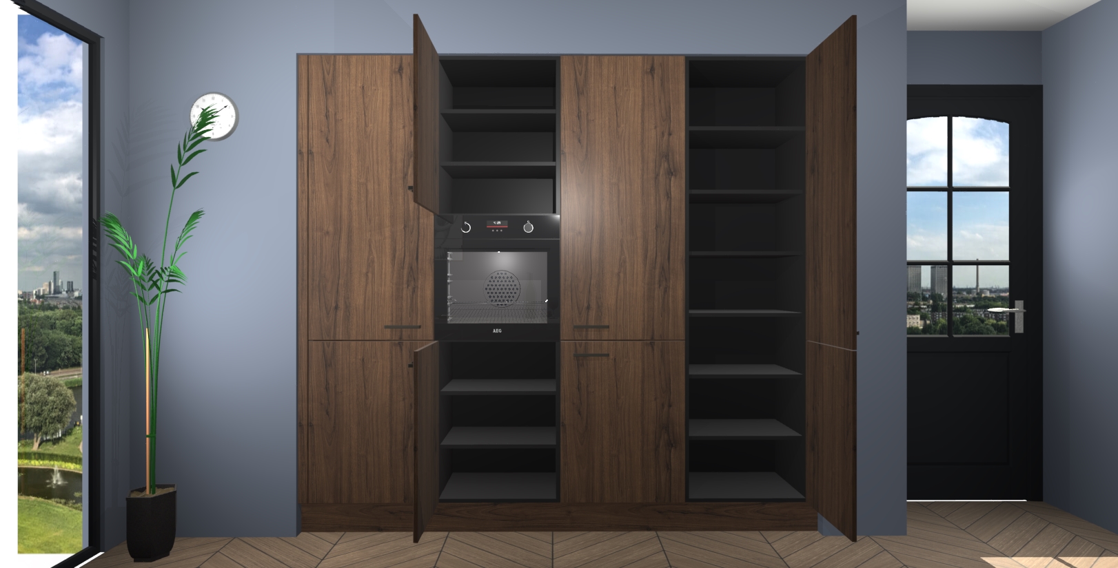 Dankzij de vele opbergruimte wordt praktisch elke centimeter van uw keuken optimaal benut, wat de ruimte een opgeruimde en sfeervolle uitstraling geeft. Bovendien zijn we er trots op dat we een snelle levering van 7 weken en een vaste lage prijs kunnen bieden, zodat u deze prachtige keuken in een mum van tijd in huis hebt!