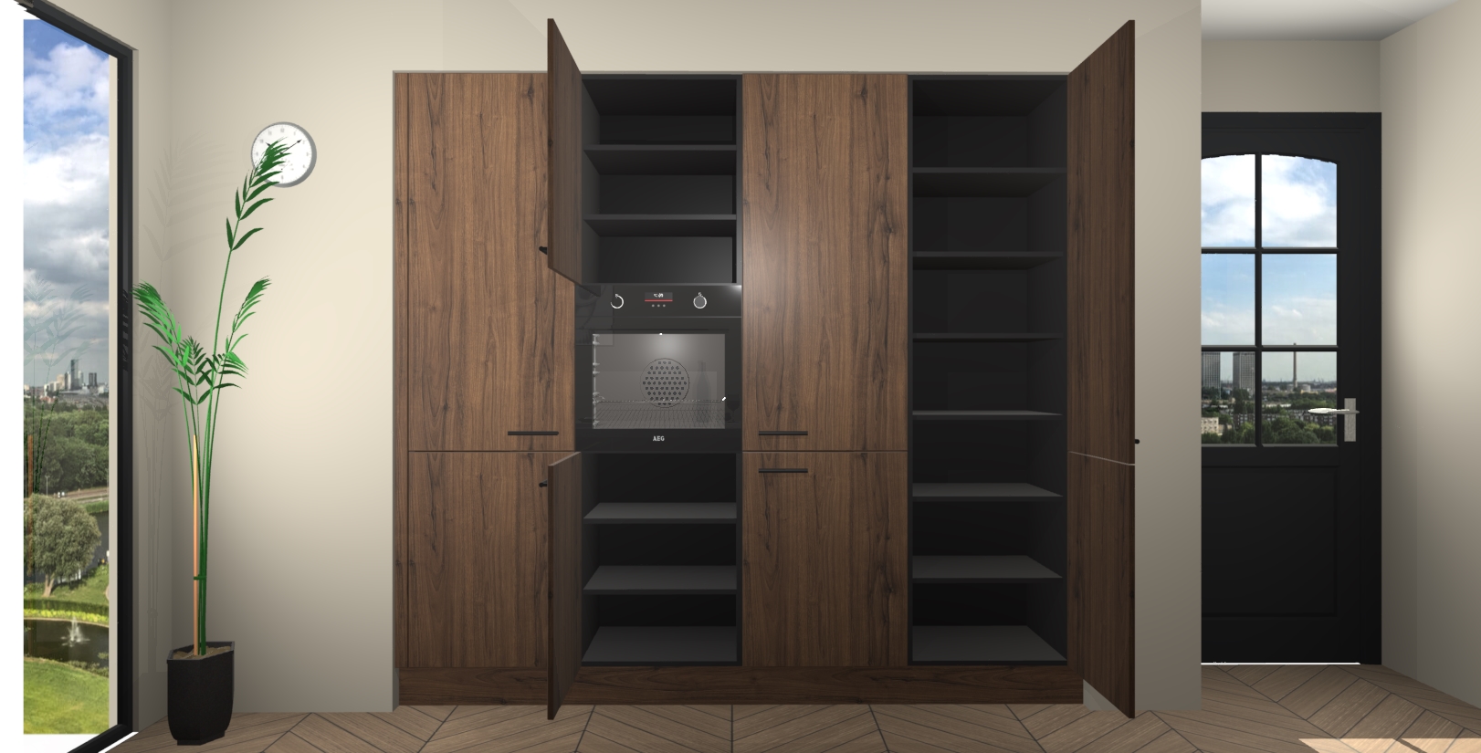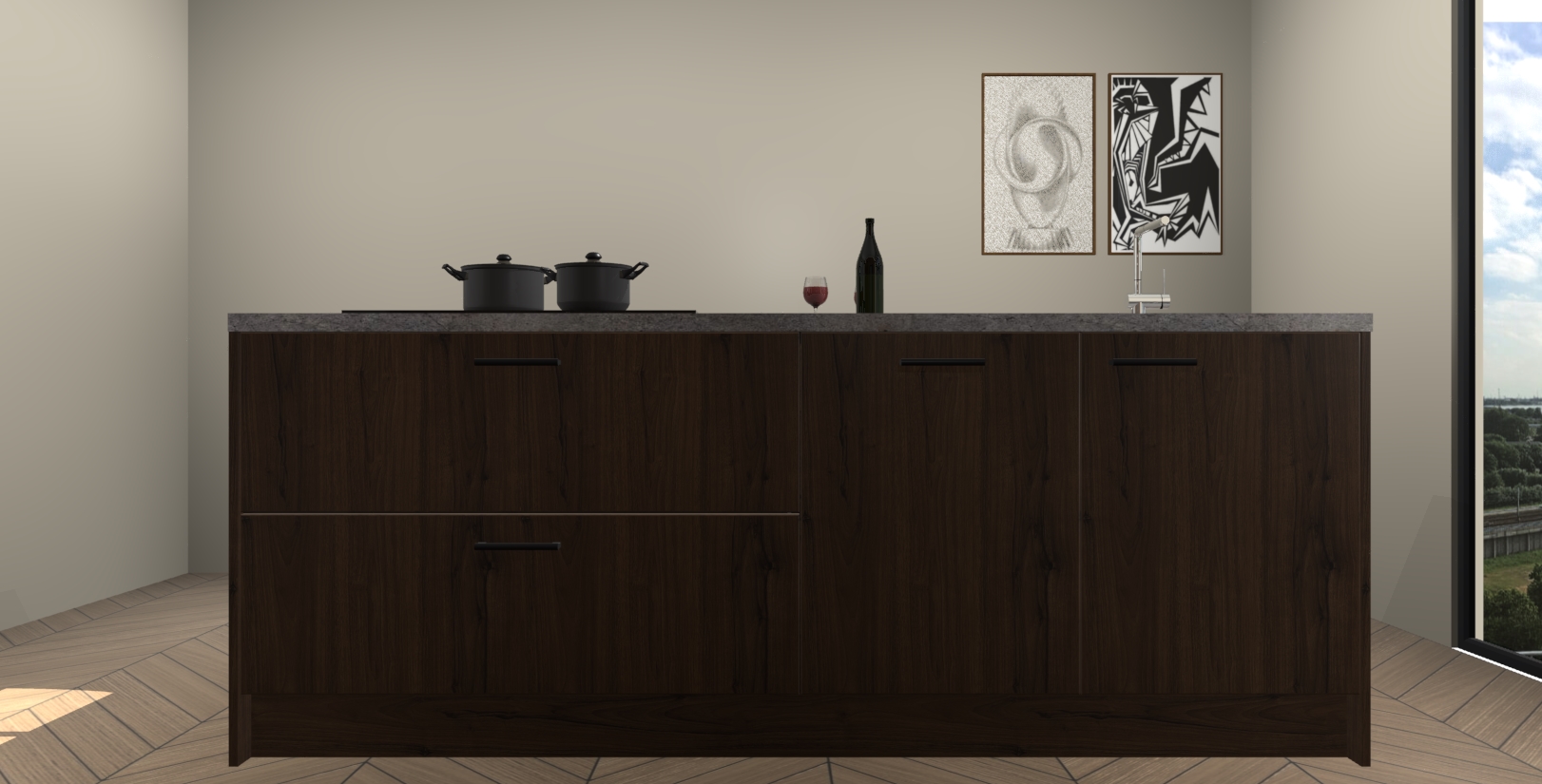 Breng luxe in uw keuken met de Noten Rusiec Keuken! Dit prachtige kookeiland straalt elegantie uit en laat elke ruimte er modern en verfijnd uitzien. De strakke Noten kleur geeft uw keuken een gevoel van sfeer en verfijning dat u bij andere stijlen niet krijgt.