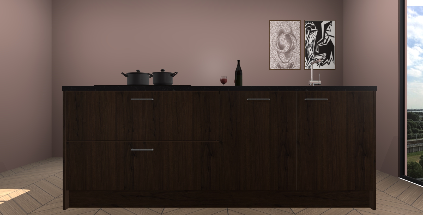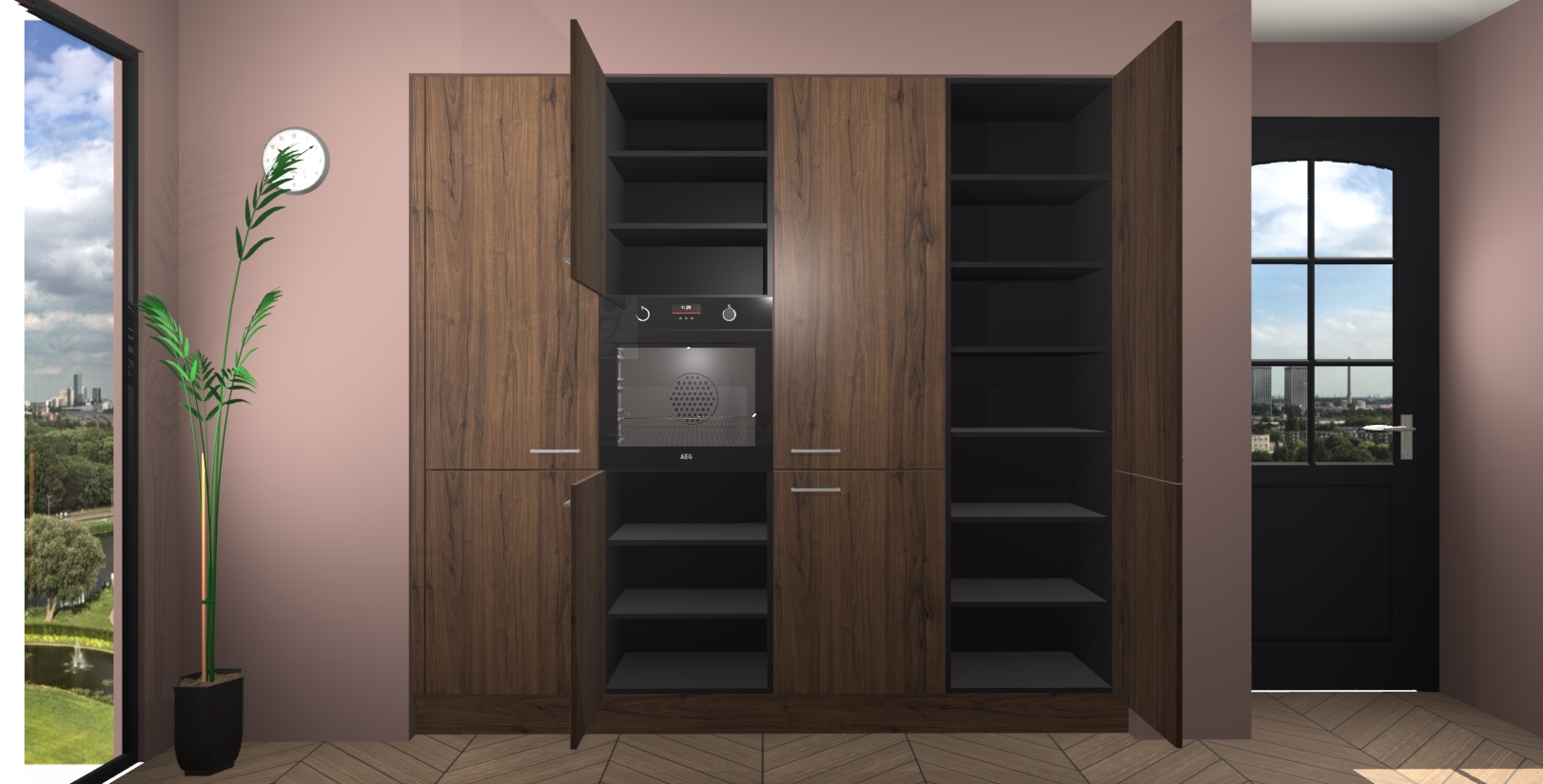Breng luxe in uw keuken met de Noten Rusiec Keuken! Dit prachtige kookeiland straalt elegantie uit en laat elke ruimte er modern en verfijnd uitzien. De strakke Noten kleur geeft uw keuken een gevoel van sfeer en verfijning dat u bij andere stijlen niet krijgt.