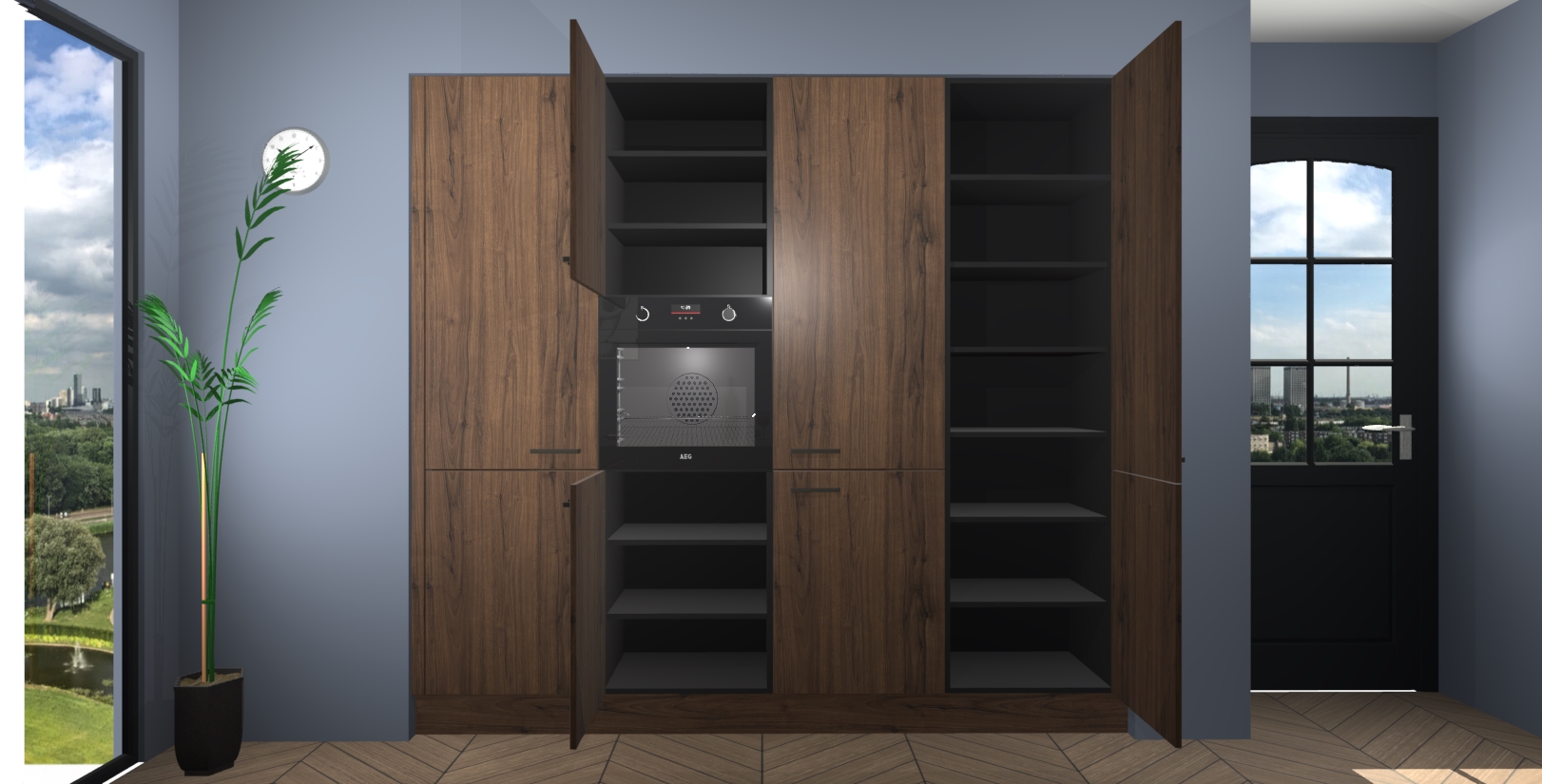 Breng luxe in uw keuken met de Noten Rusiec Keuken! Dit prachtige kookeiland straalt elegantie uit en laat elke ruimte er modern en verfijnd uitzien. De strakke Noten kleur geeft uw keuken een gevoel van sfeer en verfijning dat u bij andere stijlen niet krijgt.