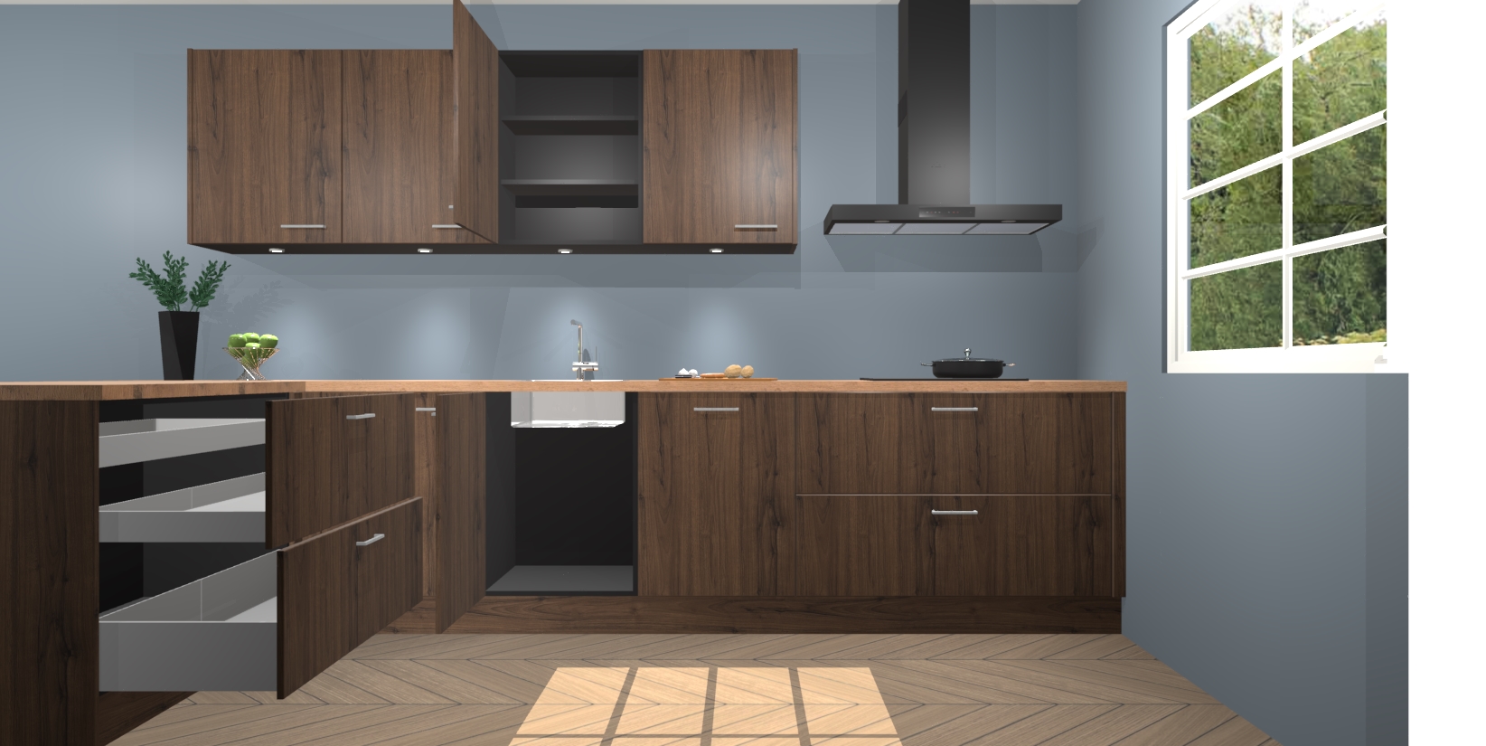 De perfecte toevoeging aan uw droomkeuken! De noten keuken Sopot is een opmerkelijke en verfijnde keuken. Hij is ontworpen met moderne lijnen en tijdloze schoonheid die garant staan voor een luxe uitstraling. Deze uiterst functionele en mooie keuken heeft een reeks verbazingwekkende functies: de overvloedige opbergruimte bevat soft close deuren, terwijl vijf inbouwapparaten zijn inbegrepen in de vaste lage prijs. Beter nog, uw noten keuken Sopot bestellen duurt slechts 7 weken met levering van voorgemonteerde kasten.