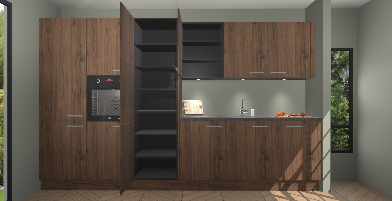 Maak kennis met de nieuwe Noten keuken Straatsburg, dat gemaakt is voor de moderne huiseigenaar. Deze chique en eigentijdse keuken geeft uw huis een instant upgrade. Het Noten ontwerp creëert de perfecte balans tussen elegantie en functionaliteit en geeft uw ruimte een strakke, uitnodigende sfeer. Het spoeleiland geeft ruime opbergruimte en met de soft-close deuren is deze keuken  perfect voor elk huis.