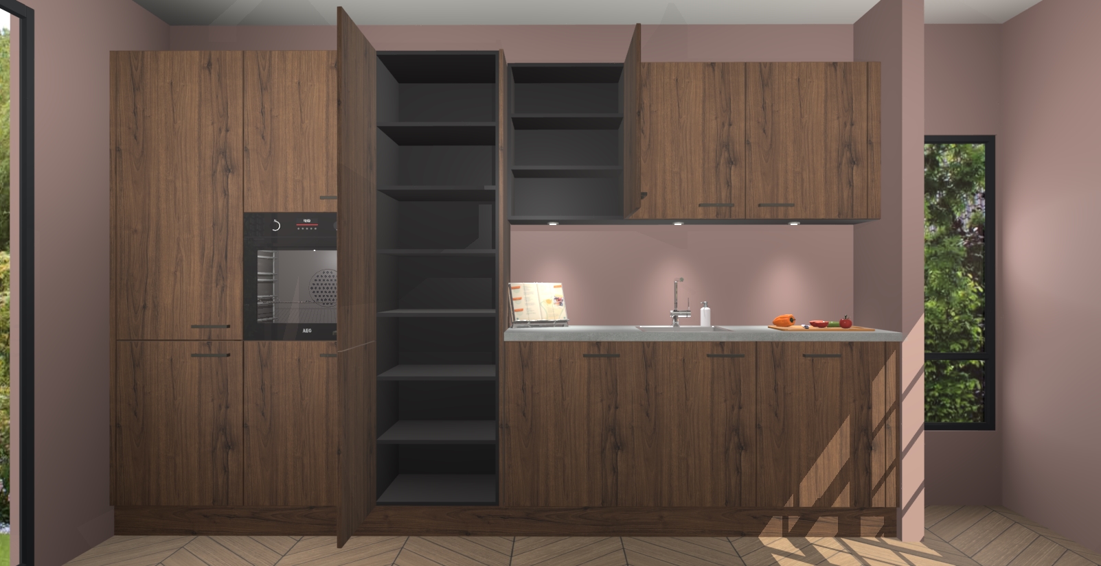 Maak kennis met de nieuwe Noten keuken Straatsburg, dat gemaakt is voor de moderne huiseigenaar. Deze chique en eigentijdse keuken geeft uw huis een instant upgrade. Het Noten ontwerp creëert de perfecte balans tussen elegantie en functionaliteit en geeft uw ruimte een strakke, uitnodigende sfeer. Het spoeleiland geeft ruime opbergruimte en met de soft-close deuren is deze keuken  perfect voor elk huis.