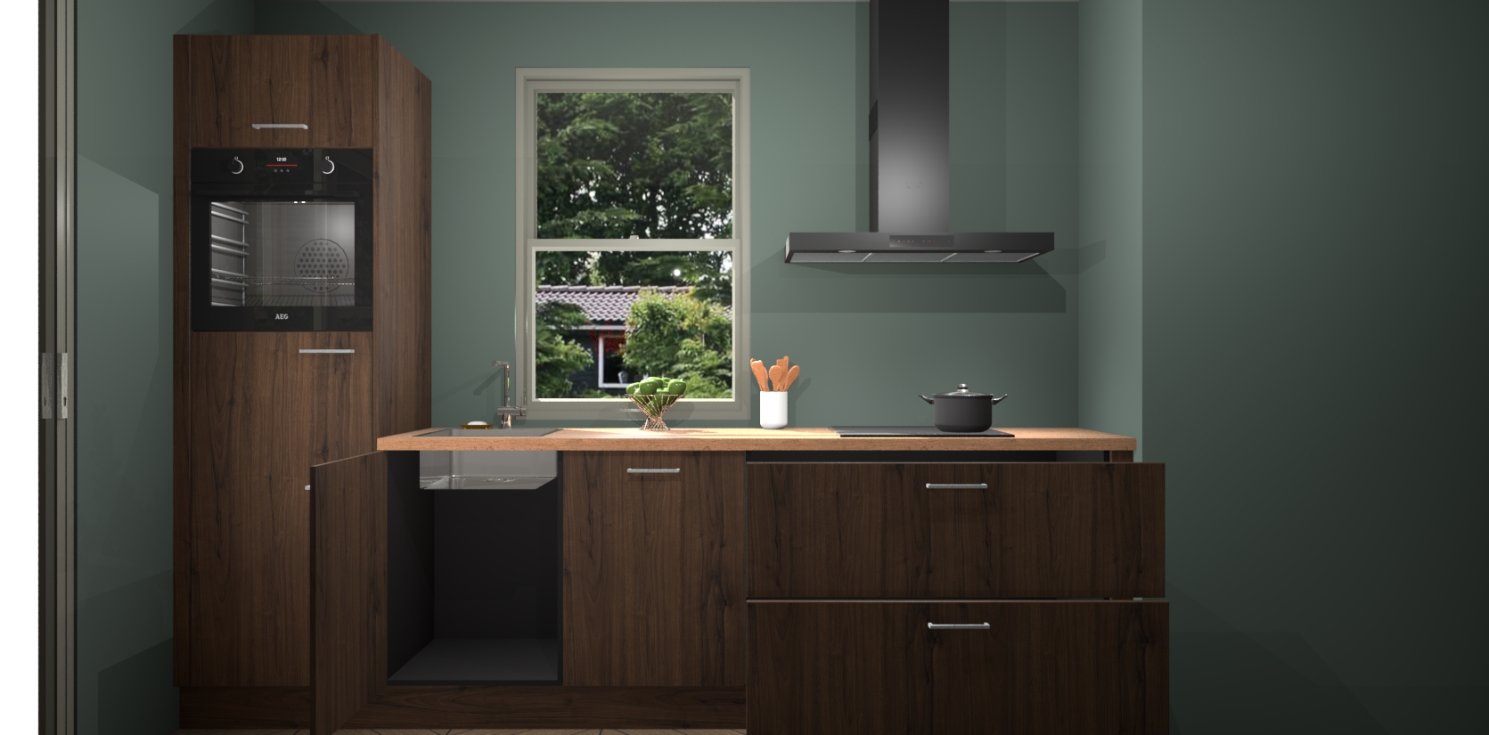 Dankzij de afwerking past de Noten keuken naadloos in elk huis of appartement. De soft-close deuren geven je extra gemoedsrust, want ze sluiten vanzelf en slaan nooit dicht! En alsof dat nog niet genoeg is, worden deze kasten volledig gemonteerd geleverd, dus maak je geen zorgen over eventuele installatieproblemen.