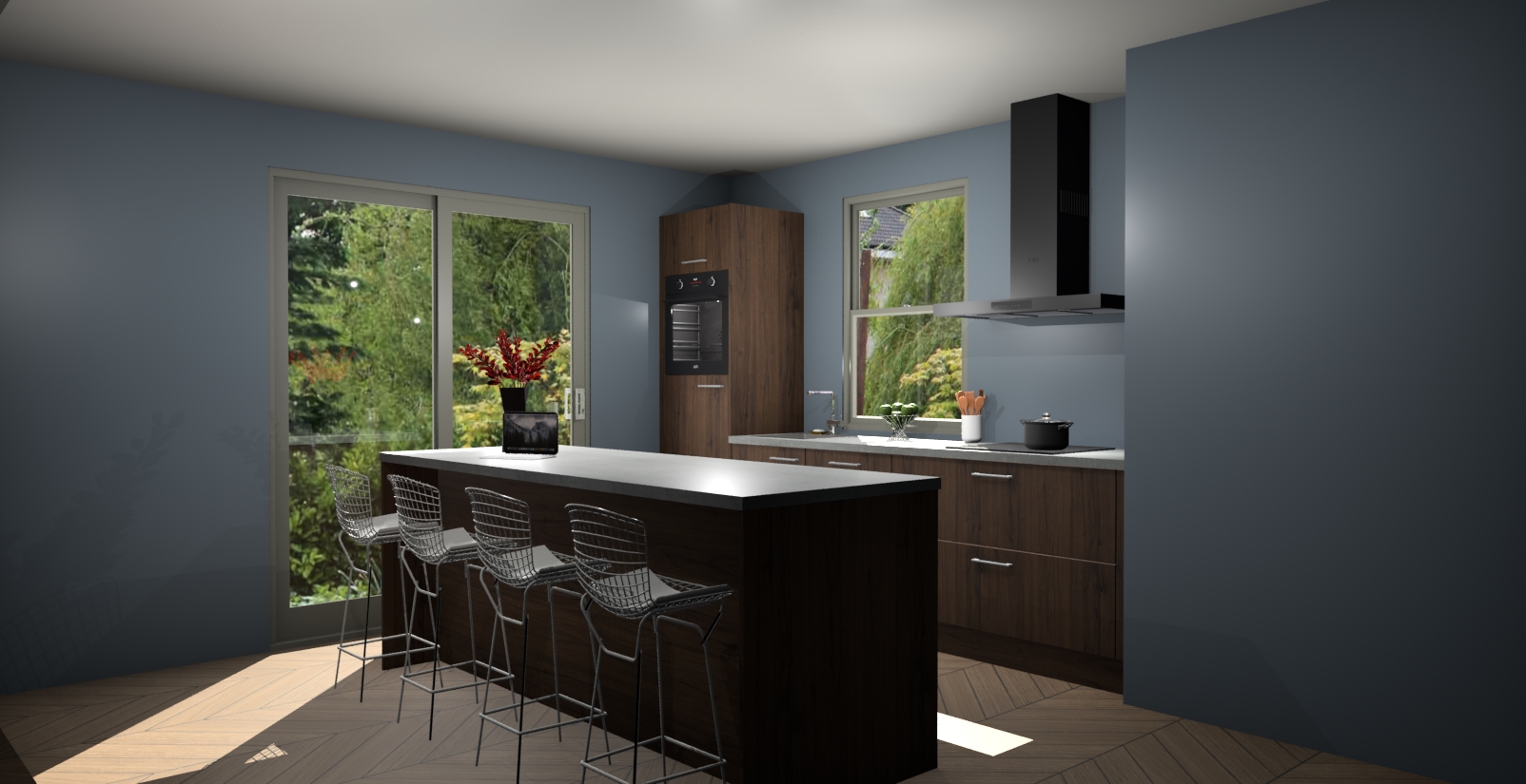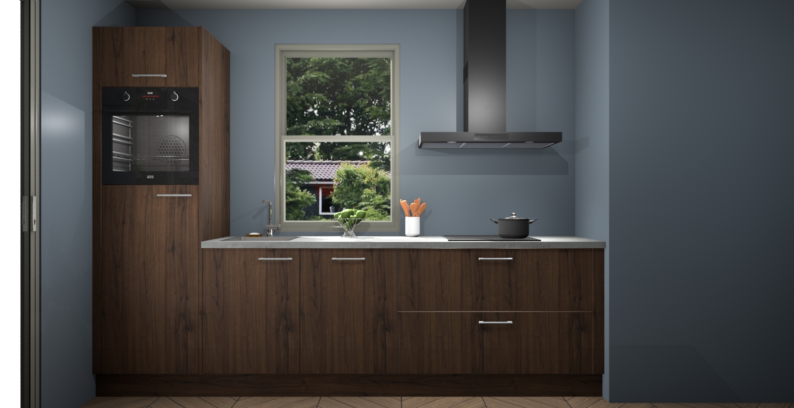 Een stijlvolle en praktische keuken als deze mag gezien worden. Dankzij de prachtige Noten afwerking wordt de keuken gemakkelijk het middelpunt van uw huis - hij ziet er geweldig uit onder allerlei lichtomstandigheden, van dag tot nacht!