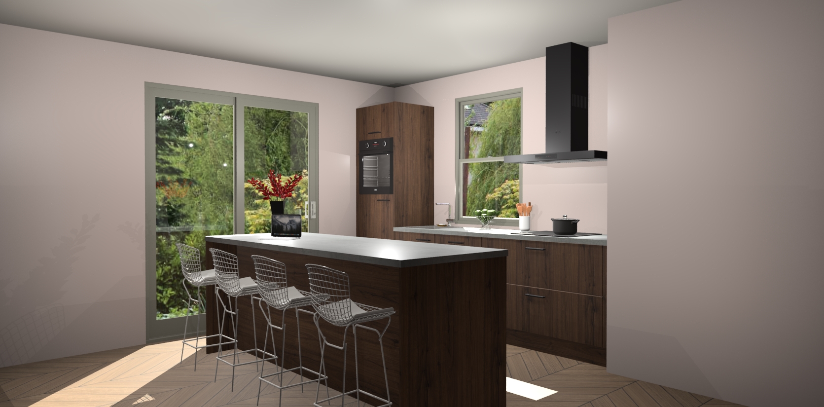 Een stijlvolle en praktische keuken als deze mag gezien worden. Dankzij de prachtige Noten afwerking wordt de keuken gemakkelijk het middelpunt van uw huis - hij ziet er geweldig uit onder allerlei lichtomstandigheden, van dag tot nacht!