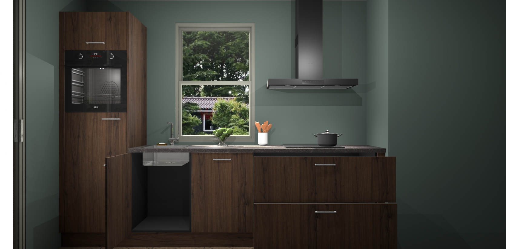 Dankzij de afwerking past de Noten keuken naadloos in elk huis of appartement. De soft-close deuren geven je extra gemoedsrust, want ze sluiten vanzelf en slaan nooit dicht! En alsof dat nog niet genoeg is, worden deze kasten volledig gemonteerd geleverd, dus maak je geen zorgen over eventuele installatieproblemen.