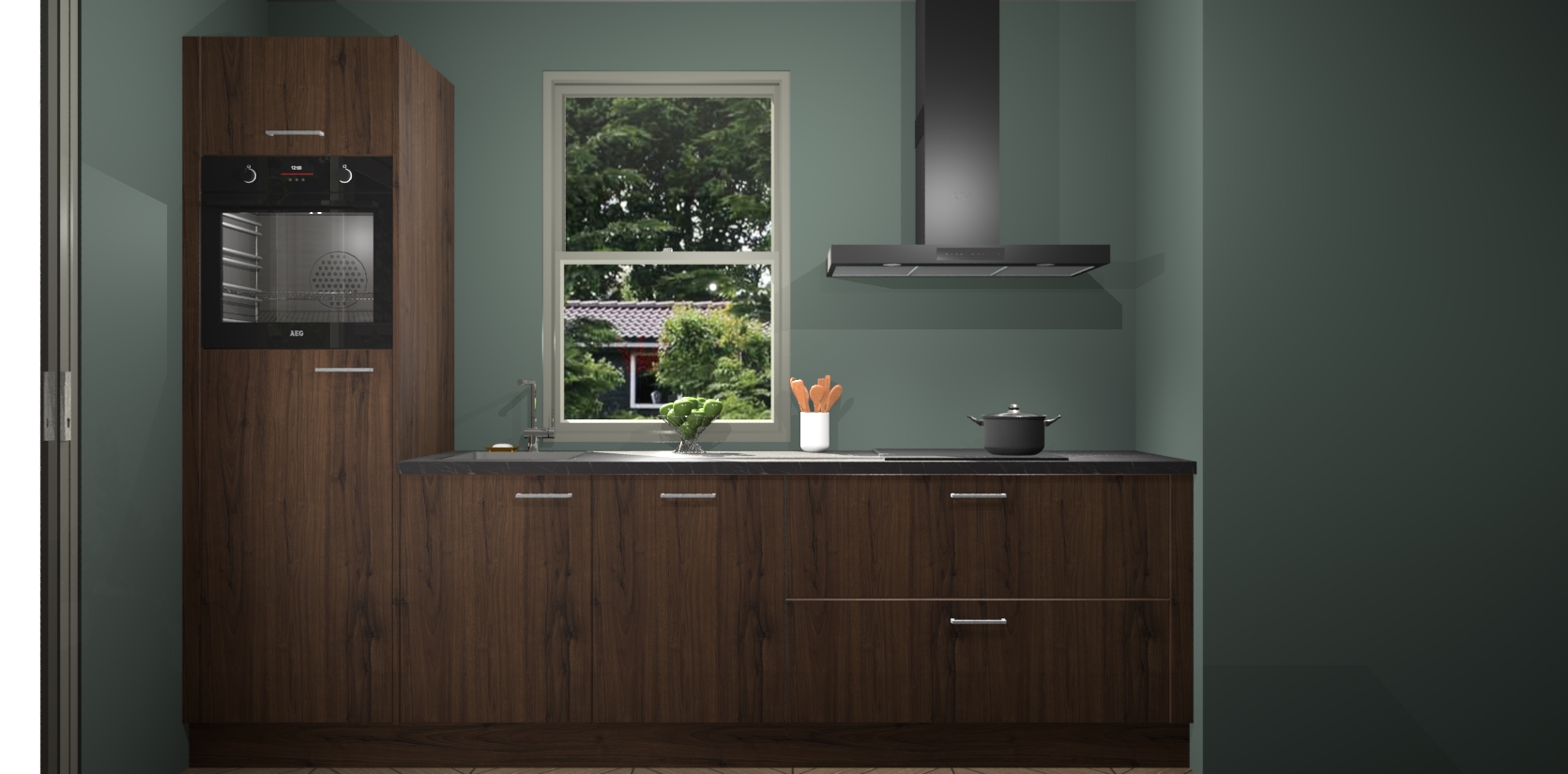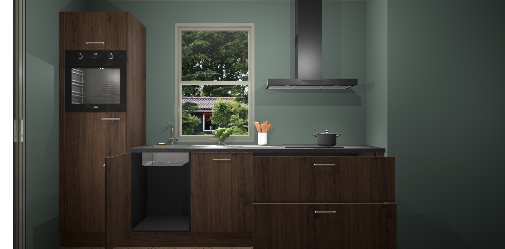 Dankzij de afwerking past de Noten keuken naadloos in elk huis of appartement. De soft-close deuren geven je extra gemoedsrust, want ze sluiten vanzelf en slaan nooit dicht! En alsof dat nog niet genoeg is, worden deze kasten volledig gemonteerd geleverd, dus maak je geen zorgen over eventuele installatieproblemen.