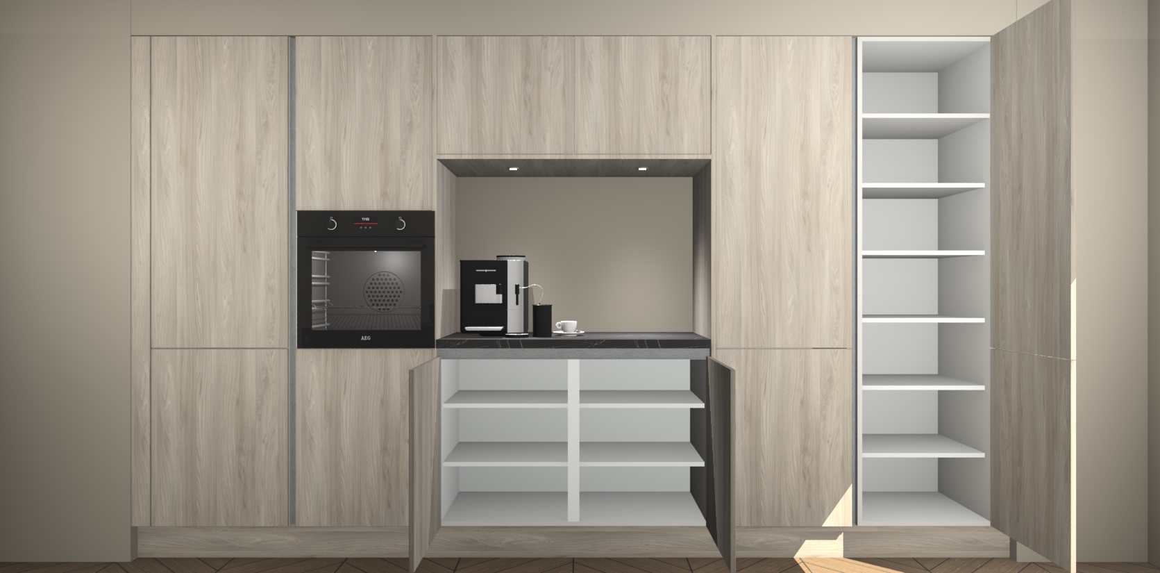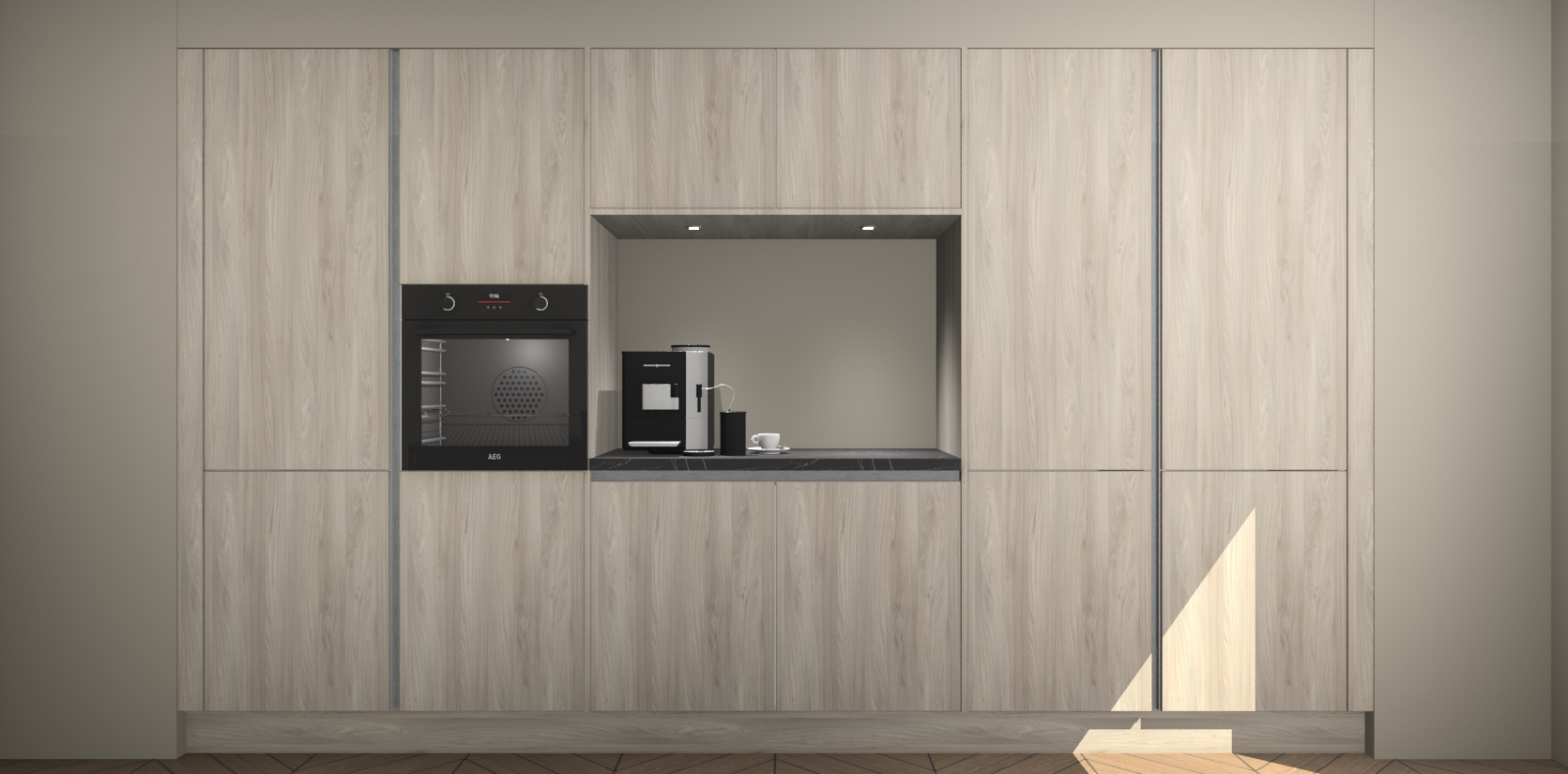 De Olm greeploze keuken Lodz wordt geleverd met een set van 5 ingebouwde apparaten: Een oven, inductiekookplaat, afzuigkap, vaatwasser en koelkast. Deze kunnen gemakkelijk worden opgewaardeerd naar AEG. Met de gegarandeerde lage prijs en de snelle levering van 7 weken kan u er op rekenen dat de Olm greeploze keuken Lodz zo snel mogelijk uw huis bereikt!