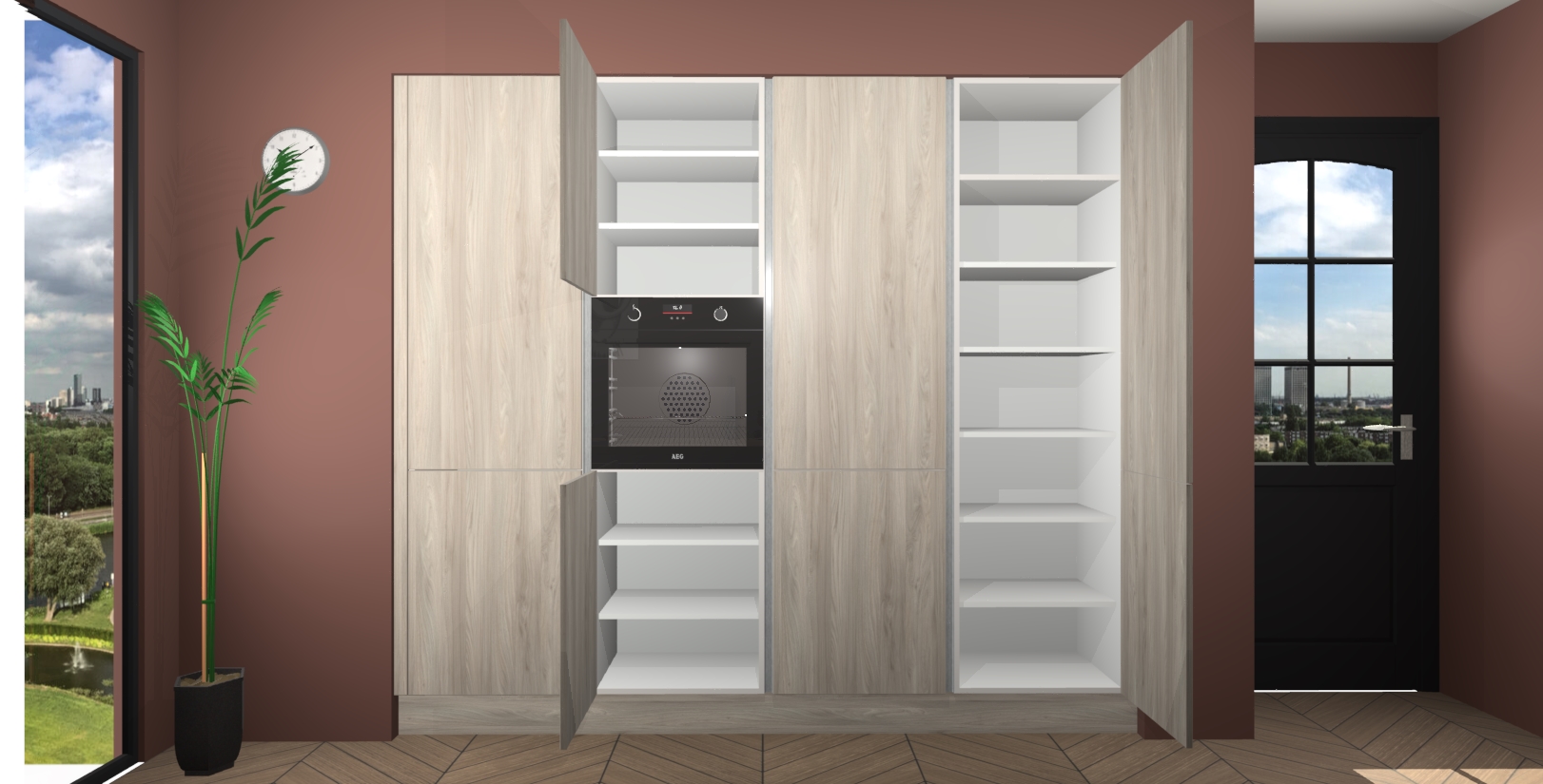 Dankzij de vele opbergruimte wordt praktisch elke centimeter van uw keuken optimaal benut, wat de ruimte een opgeruimde en sfeervolle uitstraling geeft. Bovendien zijn we er trots op dat we een snelle levering van 7 weken en een vaste lage prijs kunnen bieden, zodat u deze prachtige keuken in een mum van tijd in huis hebt!