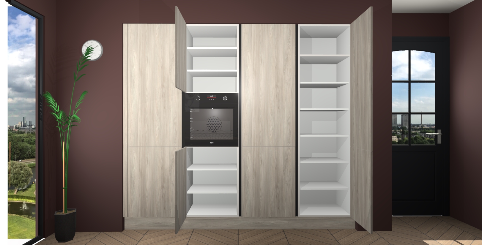 Dankzij de vele opbergruimte wordt praktisch elke centimeter van uw keuken optimaal benut, wat de ruimte een opgeruimde en sfeervolle uitstraling geeft. Bovendien zijn we er trots op dat we een snelle levering van 7 weken en een vaste lage prijs kunnen bieden, zodat u deze prachtige keuken in een mum van tijd in huis hebt!