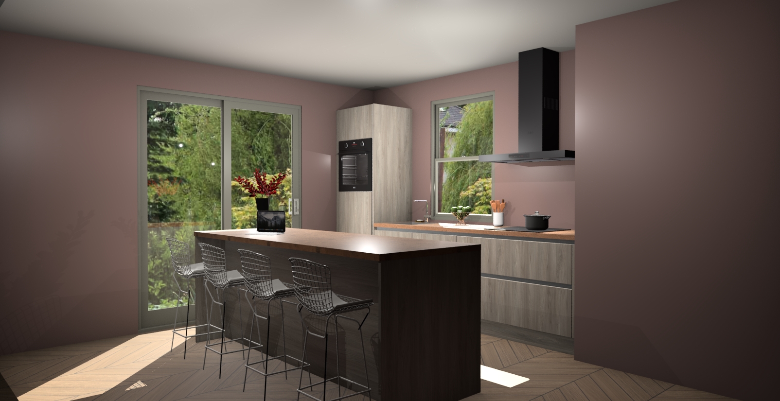 Een stijlvolle en praktische keuken als deze mag gezien worden. Dankzij de prachtige Olm afwerking wordt de keuken gemakkelijk het middelpunt van uw huis - hij ziet er geweldig uit onder allerlei lichtomstandigheden, van dag tot nacht!