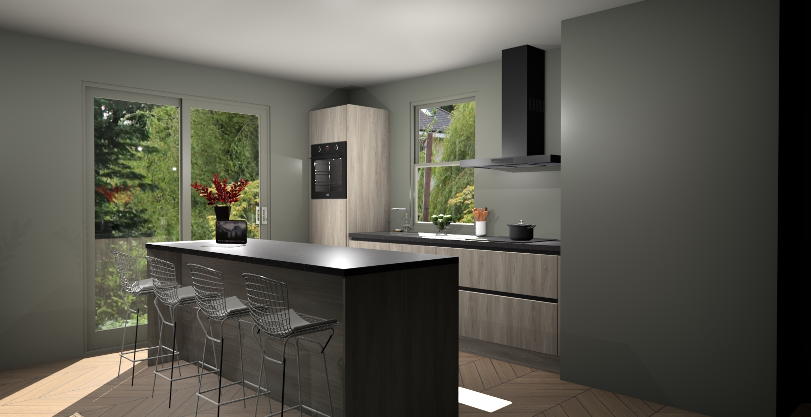 Een stijlvolle en praktische keuken als deze mag gezien worden. Dankzij de prachtige Olm afwerking wordt de keuken gemakkelijk het middelpunt van uw huis - hij ziet er geweldig uit onder allerlei lichtomstandigheden, van dag tot nacht!