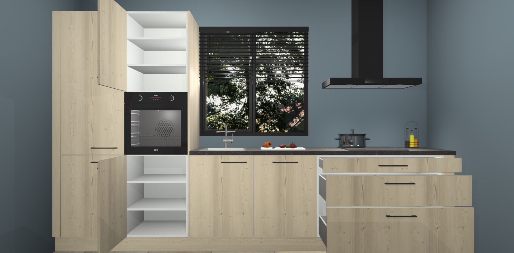 Inclusief plinten, stelpoten en werkblad