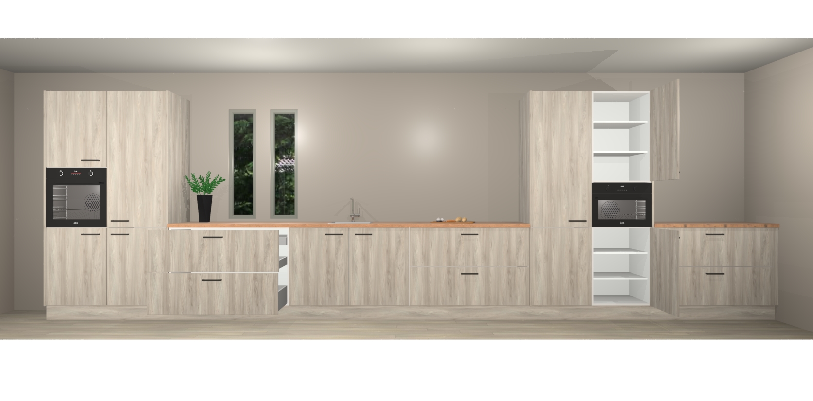 De perfecte toevoeging aan uw droomkeuken! De olm keuken Krakor is een opmerkelijke en verfijnde keuken. Hij is ontworpen met moderne lijnen en tijdloze schoonheid die garant staan voor een luxe uitstraling. Deze uiterst functionele en mooie keuken heeft een reeks verbazingwekkende functies: de overvloedige opbergruimte bevat soft close deuren, terwijl vijf inbouwapparaten zijn inbegrepen in de vaste lage prijs. Beter nog, uw olm keuken Krakor bestellen duurt slechts 7 weken met levering van voorgemonteerde kasten.