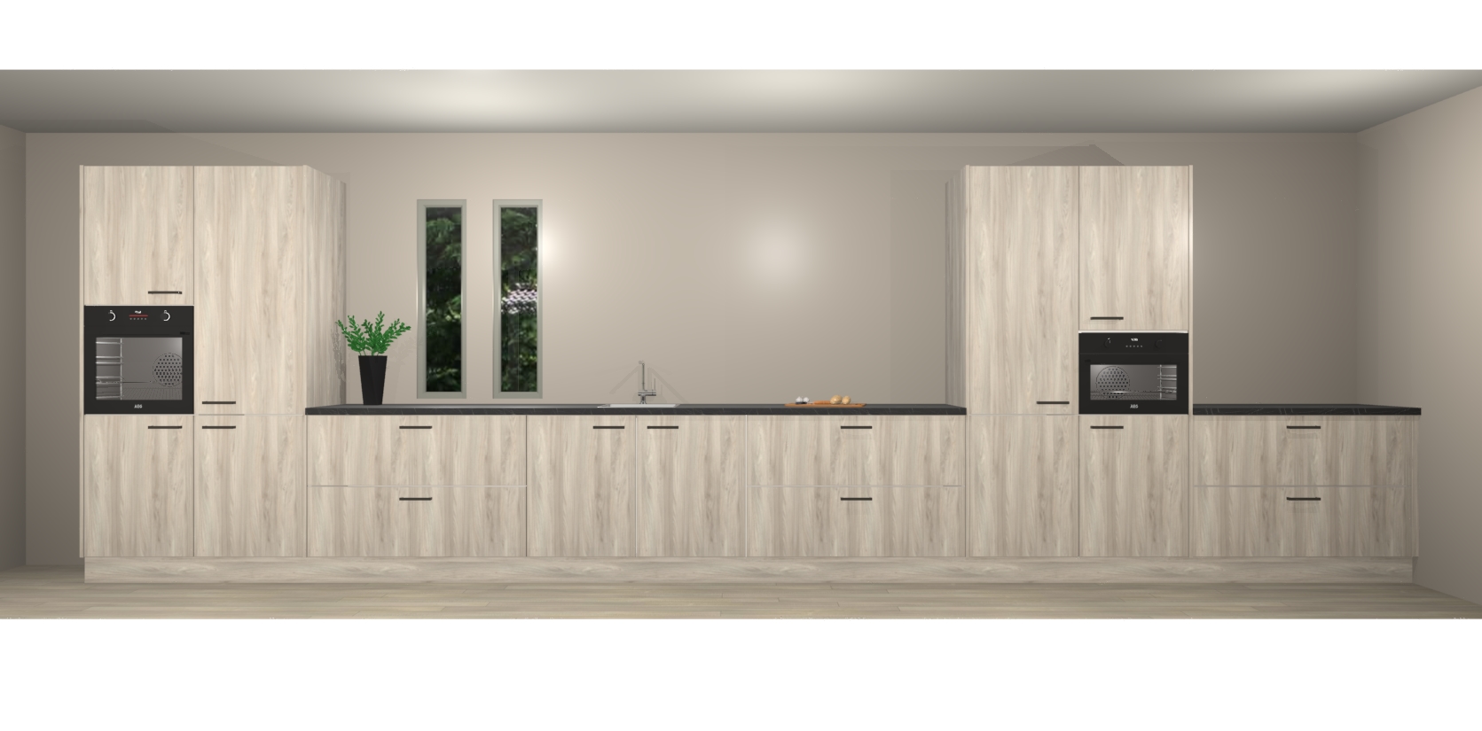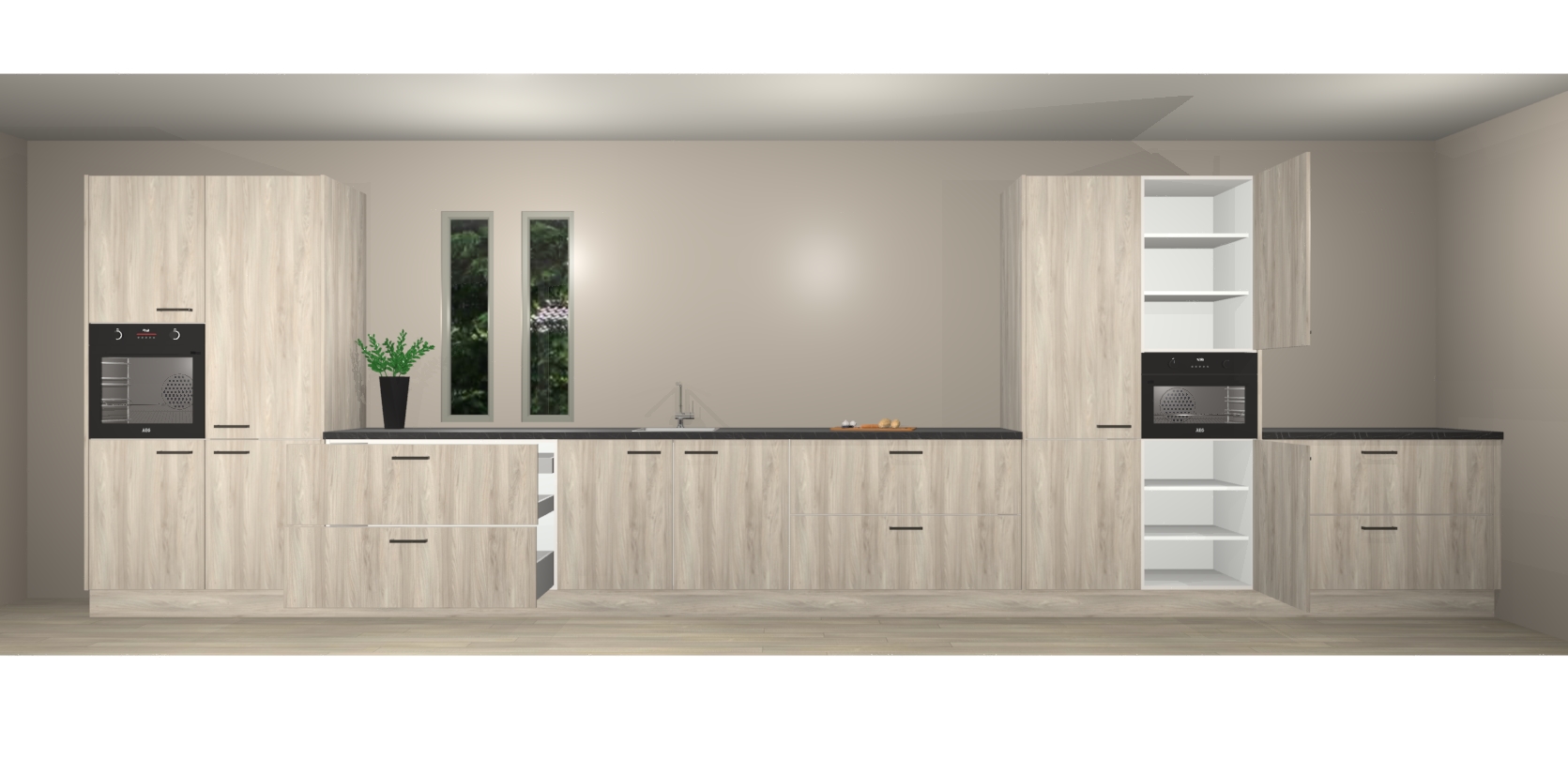 De perfecte toevoeging aan uw droomkeuken! De olm keuken Krakor is een opmerkelijke en verfijnde keuken. Hij is ontworpen met moderne lijnen en tijdloze schoonheid die garant staan voor een luxe uitstraling. Deze uiterst functionele en mooie keuken heeft een reeks verbazingwekkende functies: de overvloedige opbergruimte bevat soft close deuren, terwijl vijf inbouwapparaten zijn inbegrepen in de vaste lage prijs. Beter nog, uw olm keuken Krakor bestellen duurt slechts 7 weken met levering van voorgemonteerde kasten.