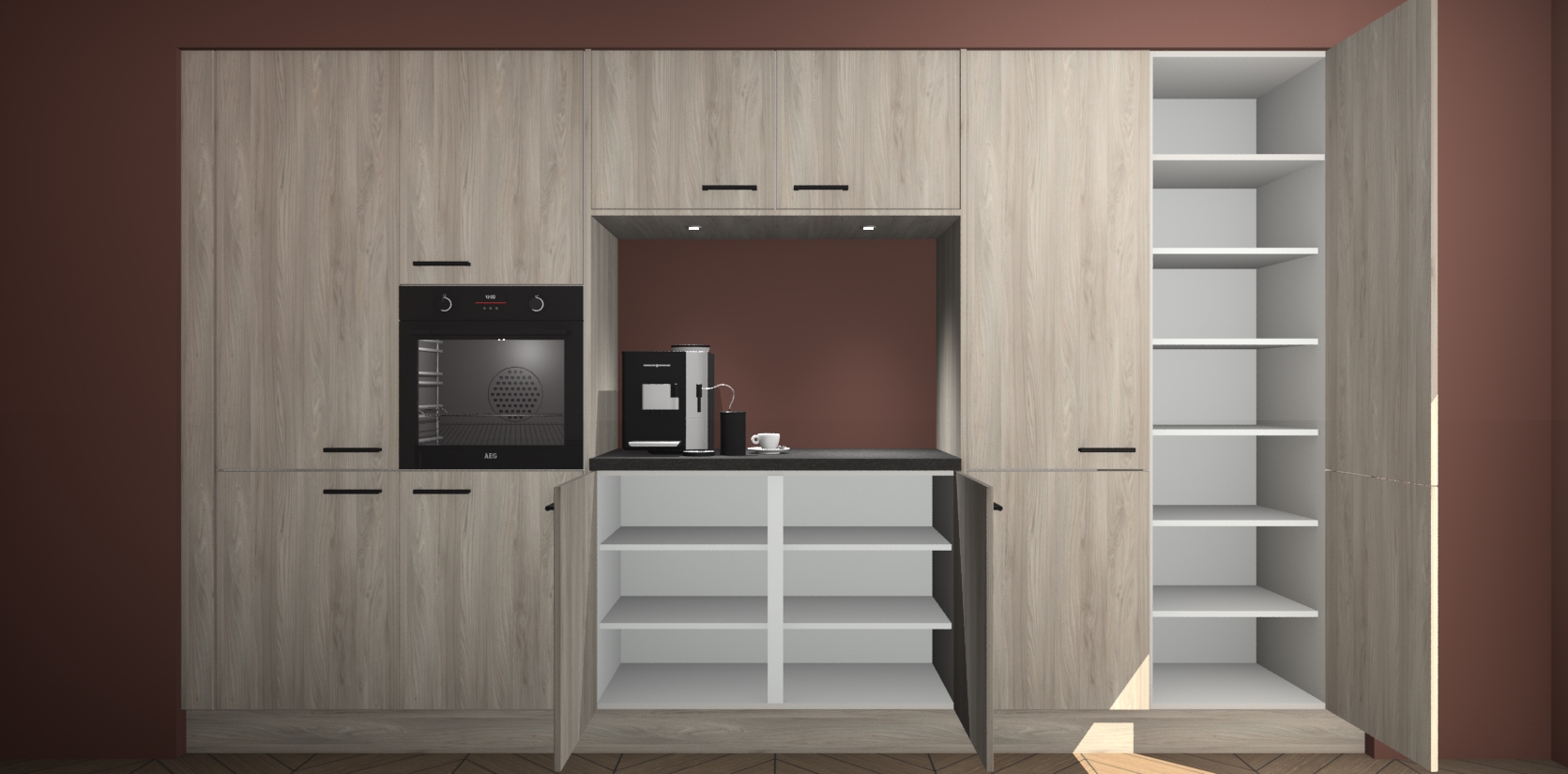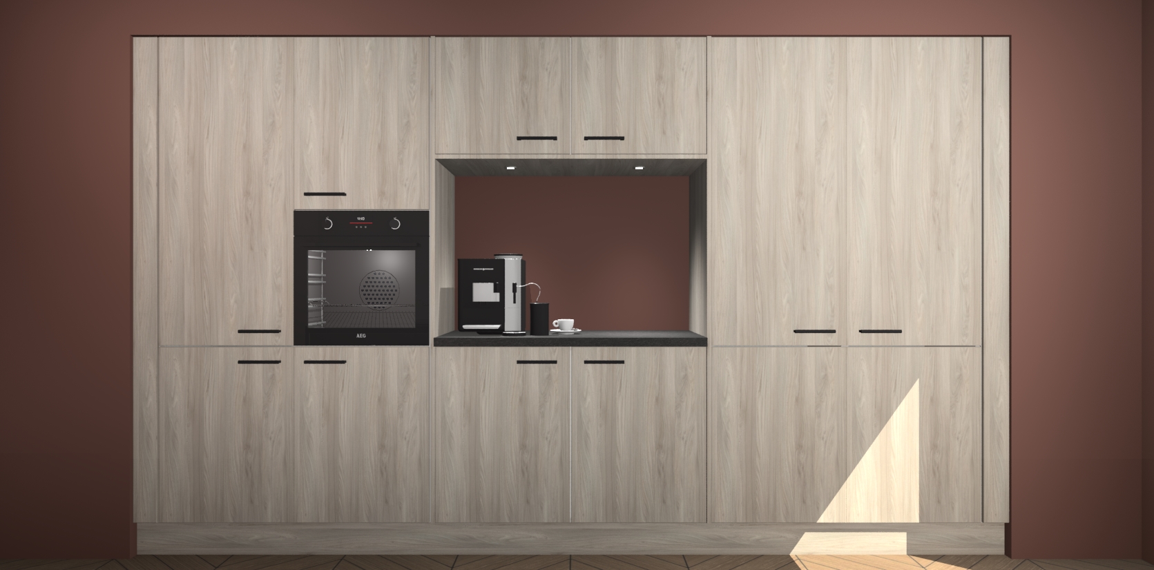 De Olm keuken Lodz wordt geleverd met een set van 5 ingebouwde apparaten: Een oven, inductiekookplaat, afzuigkap, vaatwasser en koelkast. Deze kunnen gemakkelijk worden opgewaardeerd naar AEG. Met de gegarandeerde lage prijs en de snelle levering van 7 weken kan u er op rekenen dat de Olm keuken Lodz zo snel mogelijk uw huis bereikt!