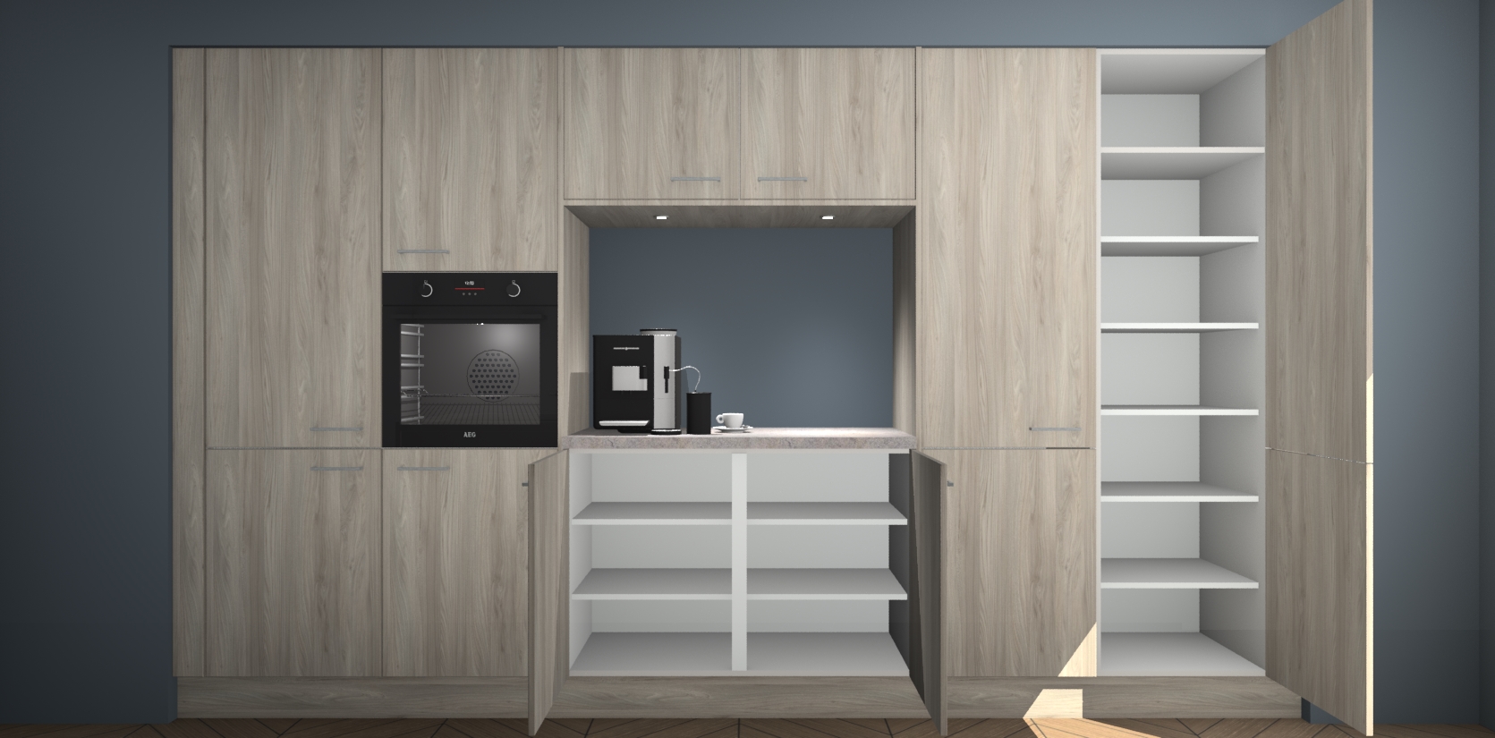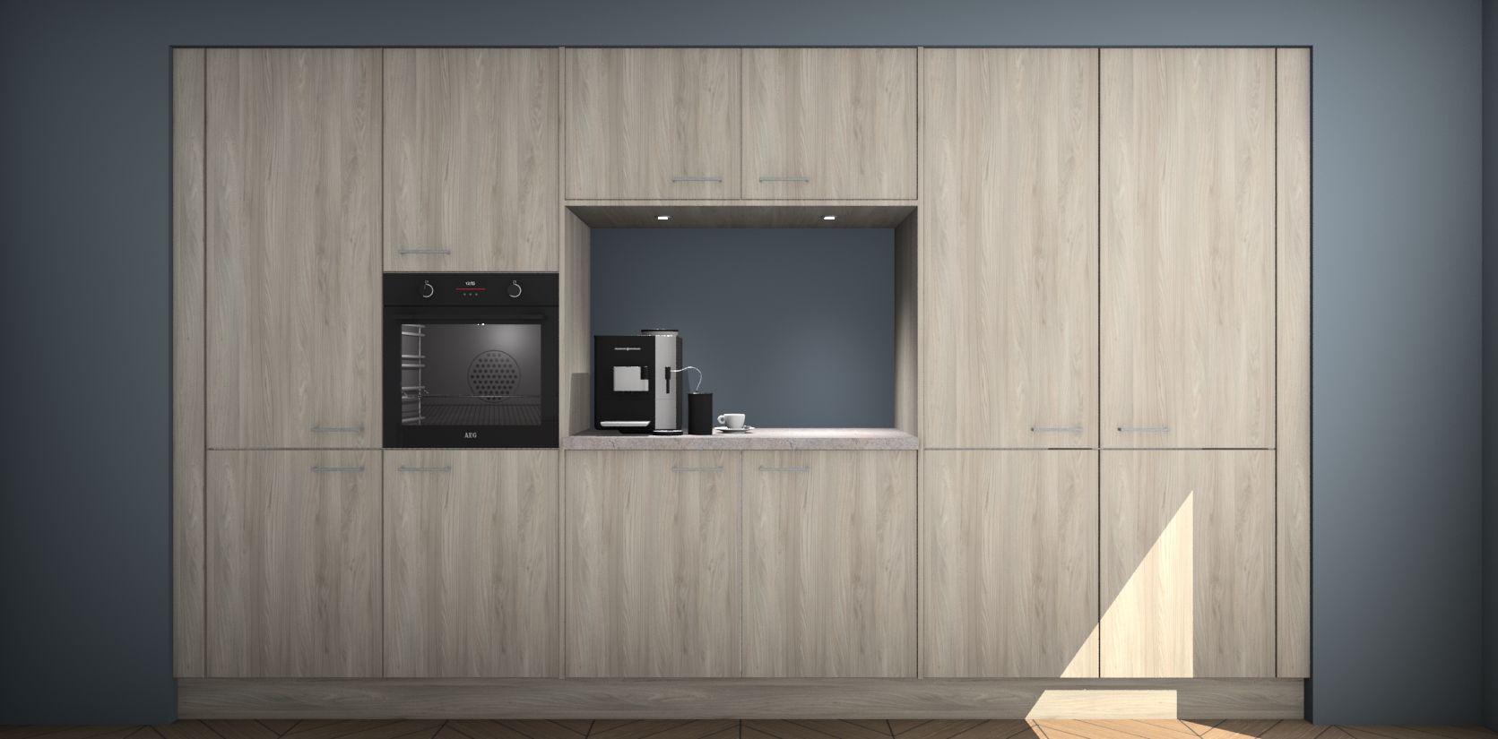 De Olm keuken Lodz wordt geleverd met een set van 5 ingebouwde apparaten: Een oven, inductiekookplaat, afzuigkap, vaatwasser en koelkast. Deze kunnen gemakkelijk worden opgewaardeerd naar AEG. Met de gegarandeerde lage prijs en de snelle levering van 7 weken kan u er op rekenen dat de Olm keuken Lodz zo snel mogelijk uw huis bereikt!