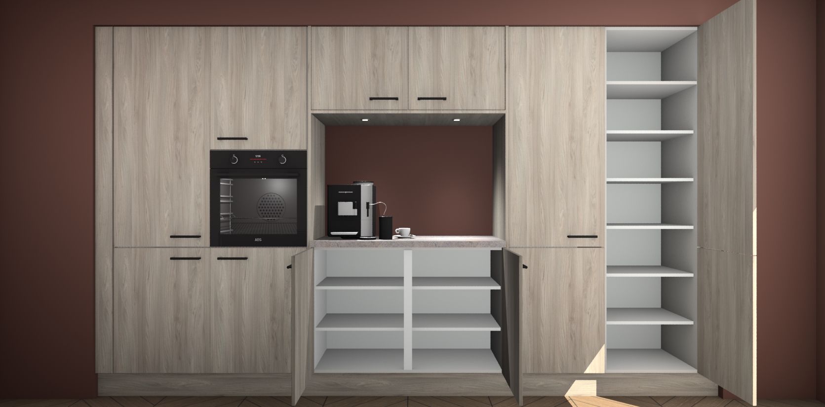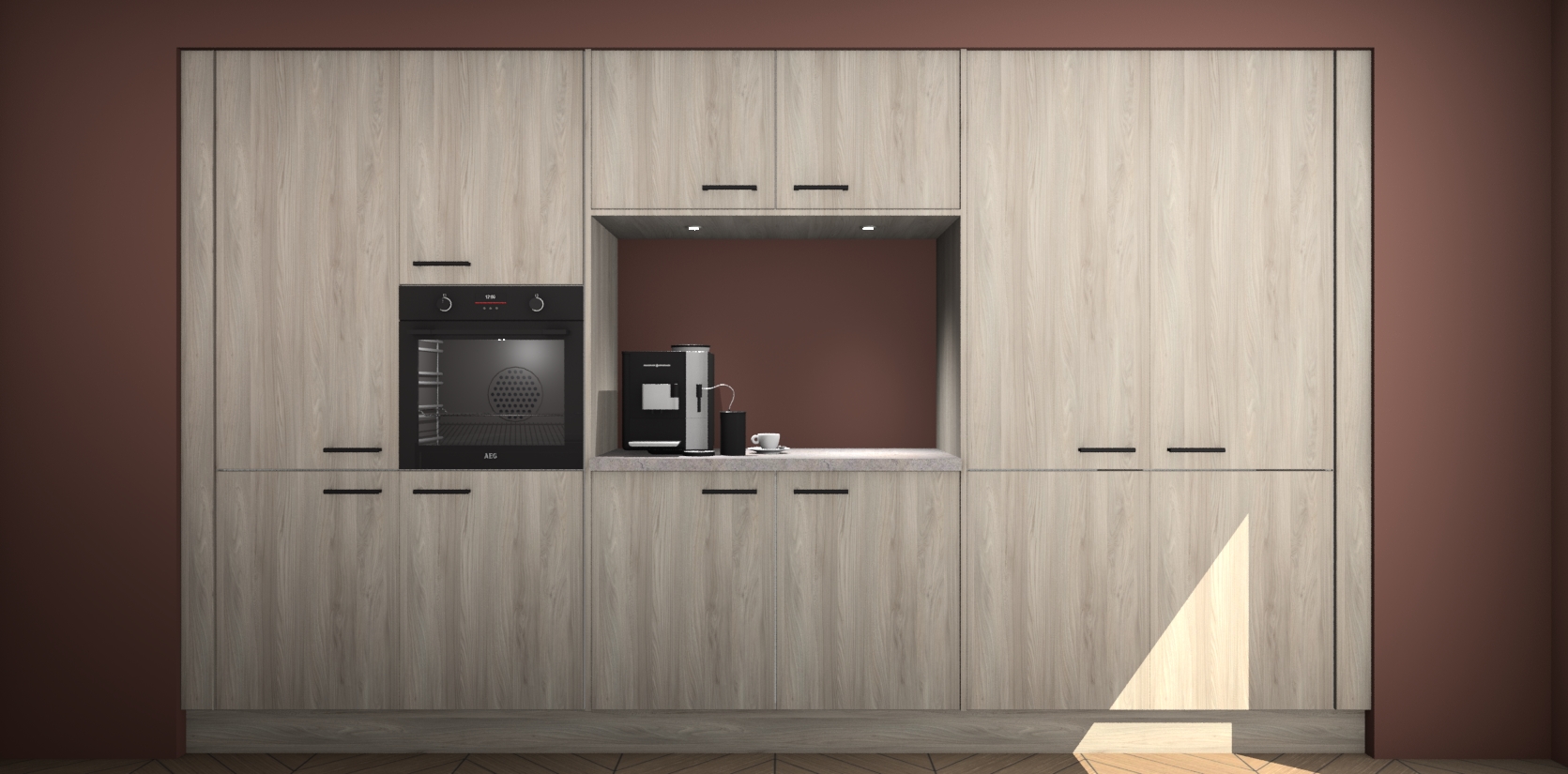 De Olm keuken Lodz wordt geleverd met een set van 5 ingebouwde apparaten: Een oven, inductiekookplaat, afzuigkap, vaatwasser en koelkast. Deze kunnen gemakkelijk worden opgewaardeerd naar AEG. Met de gegarandeerde lage prijs en de snelle levering van 7 weken kan u er op rekenen dat de Olm keuken Lodz zo snel mogelijk uw huis bereikt!