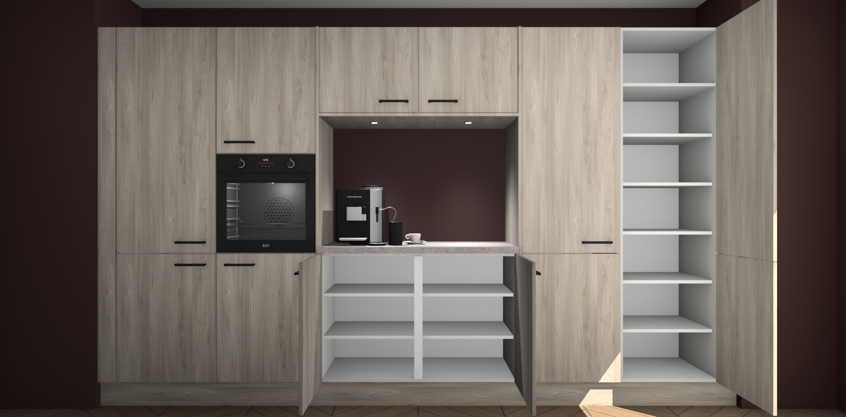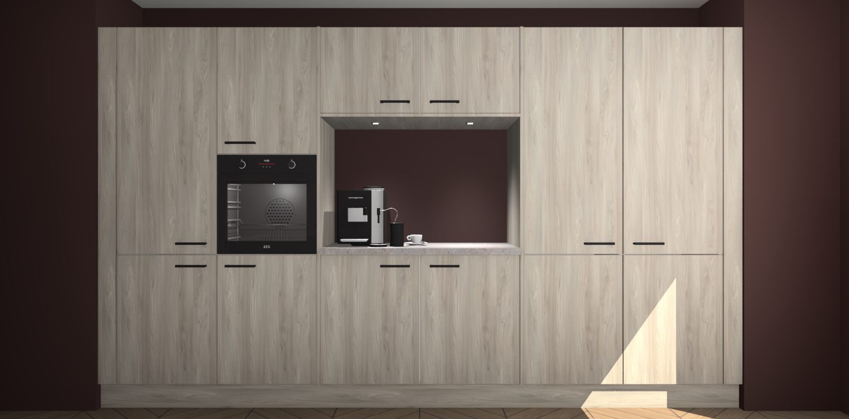 De Olm keuken Lodz wordt geleverd met een set van 5 ingebouwde apparaten: Een oven, inductiekookplaat, afzuigkap, vaatwasser en koelkast. Deze kunnen gemakkelijk worden opgewaardeerd naar AEG. Met de gegarandeerde lage prijs en de snelle levering van 7 weken kan u er op rekenen dat de Olm keuken Lodz zo snel mogelijk uw huis bereikt!