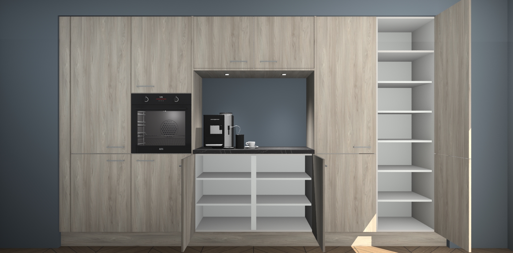De Olm keuken Lodz wordt geleverd met een set van 5 ingebouwde apparaten: Een oven, inductiekookplaat, afzuigkap, vaatwasser en koelkast. Deze kunnen gemakkelijk worden opgewaardeerd naar AEG. Met de gegarandeerde lage prijs en de snelle levering van 7 weken kan u er op rekenen dat de Olm keuken Lodz zo snel mogelijk uw huis bereikt!