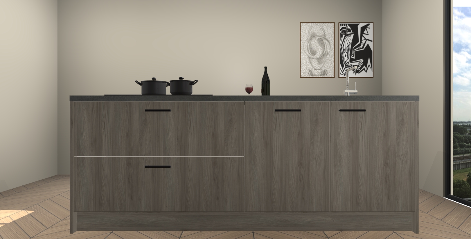 Inclusief plinten, stelpoten en werkblad