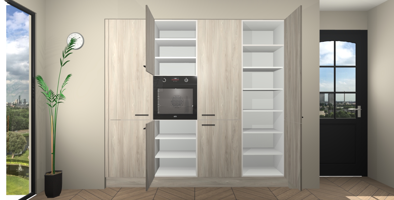 Dankzij de vele opbergruimte wordt praktisch elke centimeter van uw keuken optimaal benut, wat de ruimte een opgeruimde en sfeervolle uitstraling geeft. Bovendien zijn we er trots op dat we een snelle levering van 7 weken en een vaste lage prijs kunnen bieden, zodat u deze prachtige keuken in een mum van tijd in huis hebt!