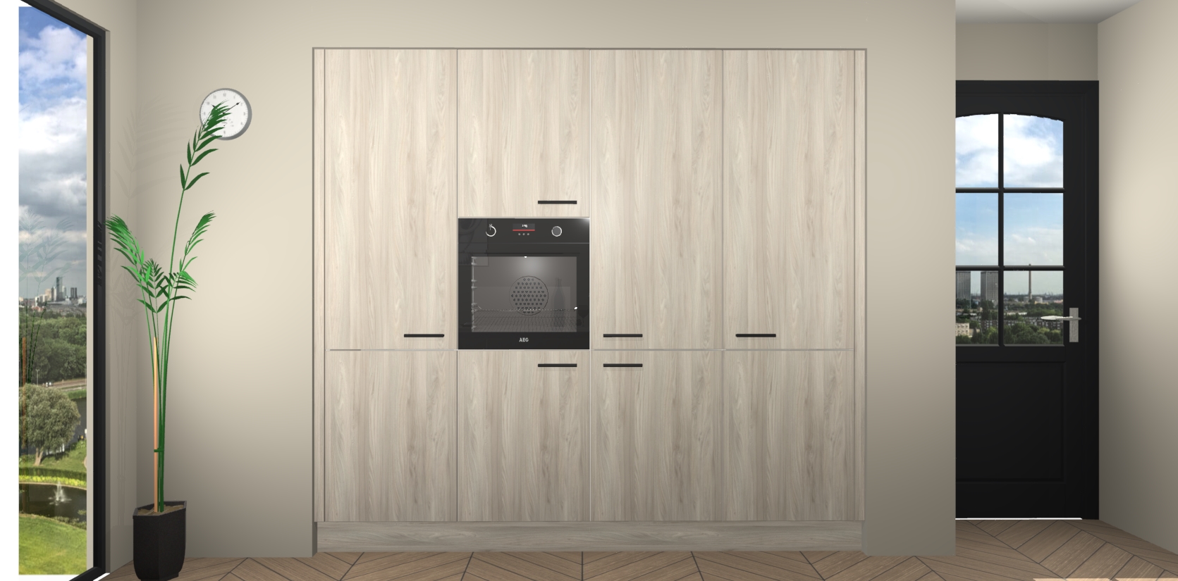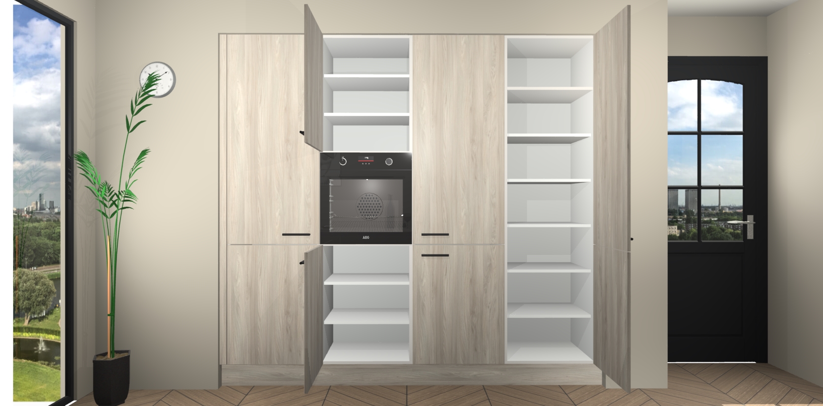 Dankzij de vele opbergruimte wordt praktisch elke centimeter van uw keuken optimaal benut, wat de ruimte een opgeruimde en sfeervolle uitstraling geeft. Bovendien zijn we er trots op dat we een snelle levering van 7 weken en een vaste lage prijs kunnen bieden, zodat u deze prachtige keuken in een mum van tijd in huis hebt!