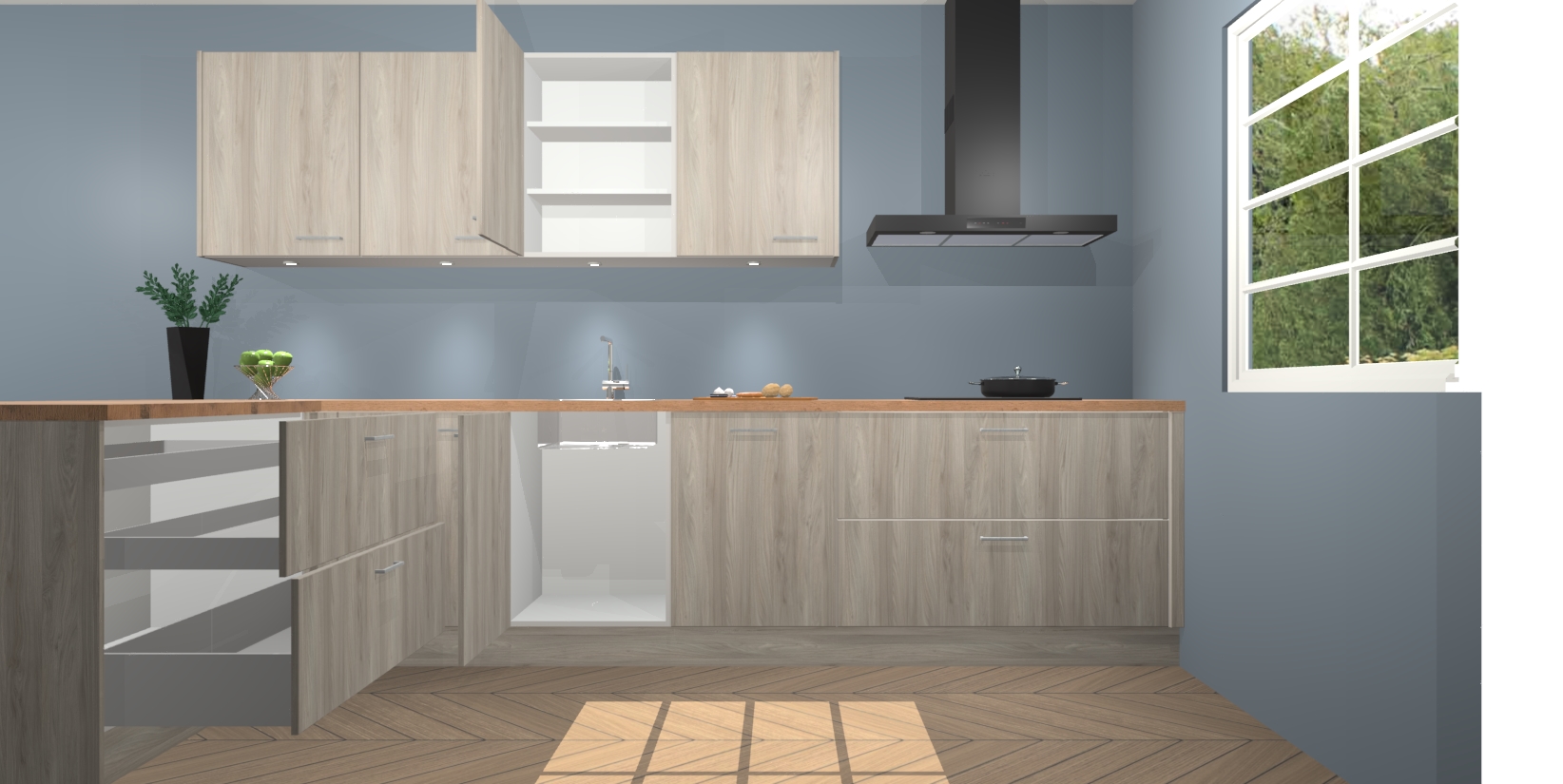 Inclusief plinten, stelpoten en werkblad