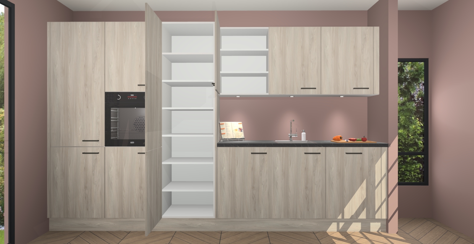 Maak kennis met de nieuwe Olm keuken Straatsburg, dat gemaakt is voor de moderne huiseigenaar. Deze chique en eigentijdse keuken geeft uw huis een instant upgrade. Het Olm ontwerp creëert de perfecte balans tussen elegantie en functionaliteit en geeft uw ruimte een strakke, uitnodigende sfeer. Het spoeleiland geeft ruime opbergruimte en met de soft-close deuren is deze keuken  perfect voor elk huis.